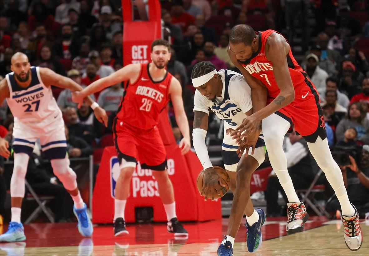这场比赛,火箭取胜的最大功臣,毫无疑问是运动战18投11中,拿到赛季新高39分,外加4篮板7助攻2抢断1盖帽的凯文-杜兰特,他不但在进攻端提供了最多的输出,也是关键时刻的定海神针,最后一分钟申京犯满离场,阿杜一人扛起了处理球的重任,为球队拼下了这场胜利。算上这场胜利,KD生涯第38场战胜森林狼,是他对阵所有球队中最多的,无愧是“木狼克星”。