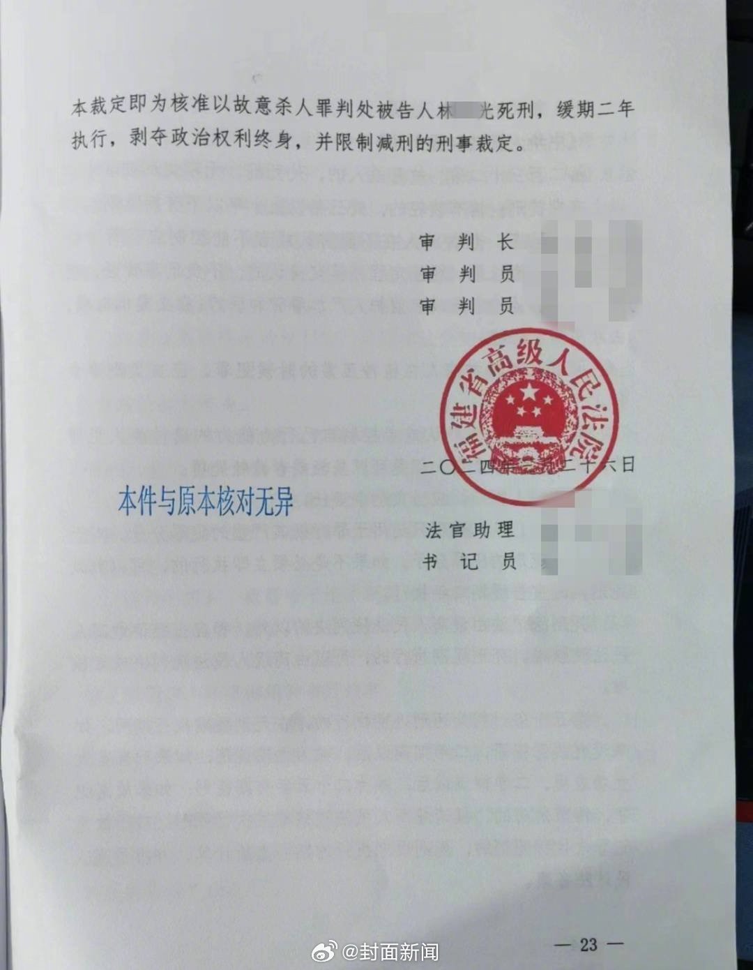 【#福建林某光杀人案二审维持死缓# 被害人家属将继续申诉】2021年8月6日,福建省漳州市平和县发生一起命案,广告店主张某津被隔壁经营小吃店的林某光杀害。被害人妻子吴女士介绍,其丈夫张某津“全身被砍60多刀”。事发后,林某光辩护称自己是正当防卫,且平和县公安局出具精神报告结论显示其“妄想性障碍(偏执性精神病),评定为无刑事责任能力。”林某光一审被判处死刑缓期二年执行后,被害人家属当庭提出上诉。
