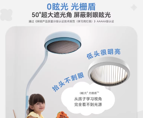 高性价比首选,普通家庭也能轻松享受高品质护眼体验。搭载首创自然光全光谱技术,光谱与太阳光拟合度超95%,补充益眼红光与天青光,促 进睫状肌放松,从源头规避蓝光伤害,长期用眼更舒适。采用普瑞原装进口灯珠,搭配侧发光+多重光学漫反射结构,配合柔光纸与菱晶格栅设计,防眩效果大幅提升,光线柔和不刺 眼,无重影、无眩光困扰。