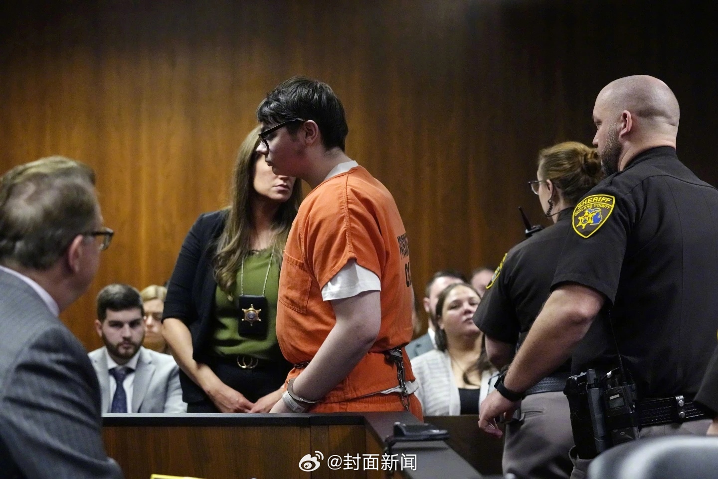 【#美国一中学生枪杀多人其父母被判刑#】美国一名中学生开枪打死4名同学,他的父母当地时间9日分别被判处10至15年监禁。按照路透社说法,这是美国多人死伤校园枪击案行凶学生的家长首次被判刑。2021年11月30日,时年15岁的伊森·克伦布利在密歇根州底特律市附近的牛津镇中学开枪打死4名同学,打伤6名同学和一名老师。他于2022年承认4项一级谋杀罪名,被判处终身监禁且不得假释。(央视新闻)