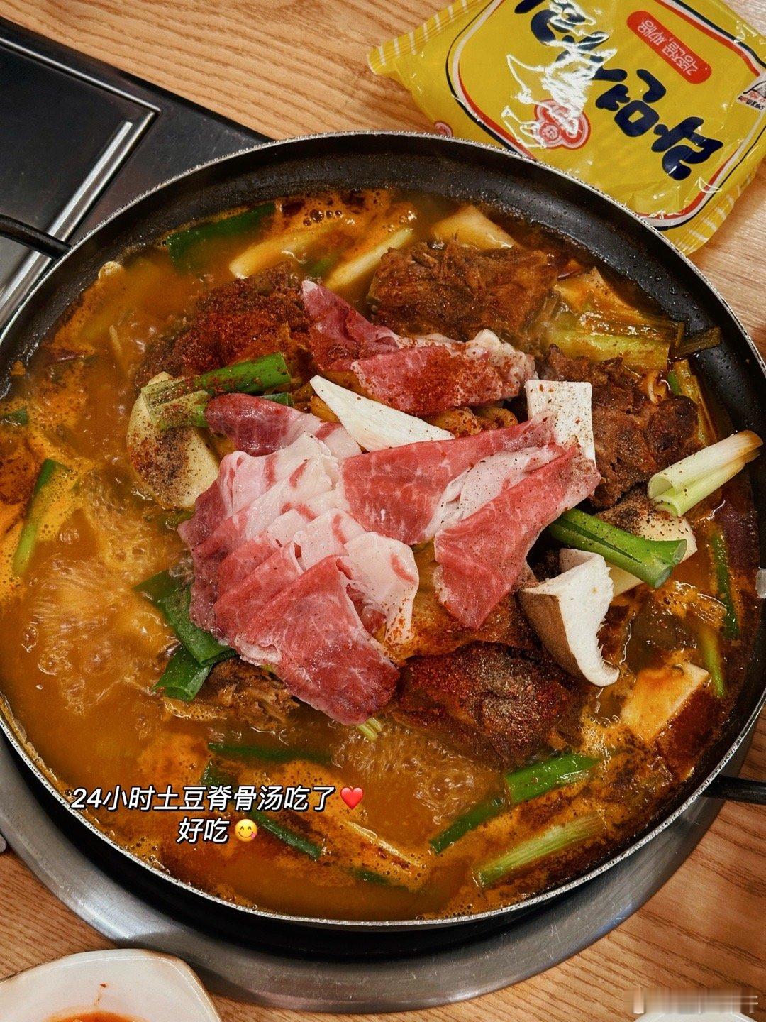 济州岛旅游小分队集合啦!杭州过去才一个多小时,落地放好行李赶紧去楼下吃了24小时土豆脊骨汤!没想到是这么行程中最好吃的!回来之前还去吃了一顿~推荐推荐[爱你]