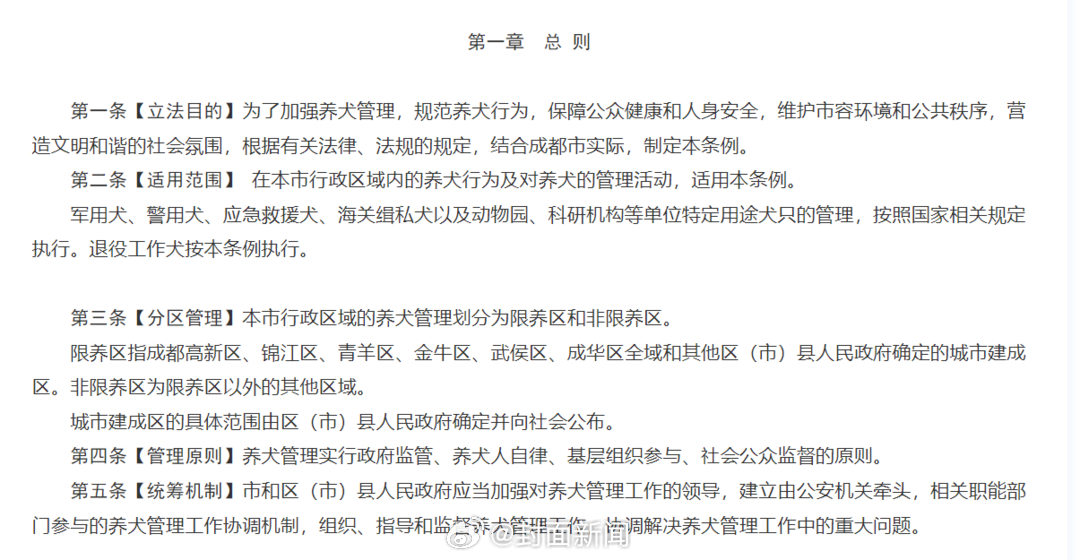 【#成都养犬或划分限养区和非限养区#[话筒]】4月10日,成都市公安局在官网发布一则《成都市养犬管理条例(修订草案)(征求意见稿)》公开征求意见。其中提到,成都市行政区域的养犬管理划分为限养区和非限养区。限养区指成都高新区、锦江区、青羊区、金牛区、武侯区、成华区全域和其他区(市)县人民政府确定的城市建成区。非限养区为限养区以外的其他区域。