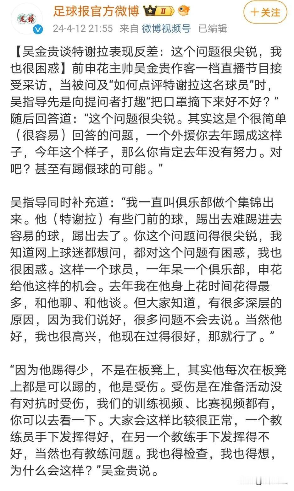 球迷都惊呆了,吴金贵真是啥都敢说,公开质疑上赛季申花队外援踢假球。 吴金贵应该也想不通,本赛季上海申花无非就是调整个了几个球员而已,球队和球员的表现相较于上赛季差距竟如此之大,这不是明摆着说自己执教能力不行吗?他甚至都有可能怀疑球员有做掉自己的嫌疑。 作为执教履历丰富的国产一流教练,因其温文尔雅的作风,受到国内大部分球迷的爱戴,但毫无根据的去质疑球员踢假球,人设或许在球迷心中真的要崩塌了。
