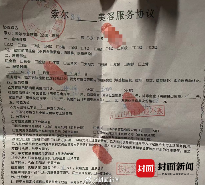 【#大学生18元体验祛痘背上万元贷款# :退款要求支付25%违约金】#315一起追踪到底# 4月12日,东莞一专科院校学生李雷反馈称,自己在美容院18元体验祛痘,结果被店员说服签署了一份9800元的分期协议,想退款但被要求支付25%的违约金,“手机是给店员操作的,我也不知道分期就是平台贷款。”对此,商家表示,当事人属自愿购买产品,确认并非学生才建议分期贷款。据悉,李雷贷款的机构为重庆某小贷公司,每期还款金额为653.68(本金457.68,利息196)元,共18期,年化利率达19.9%。