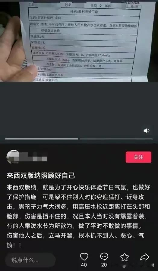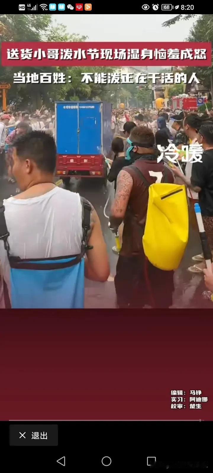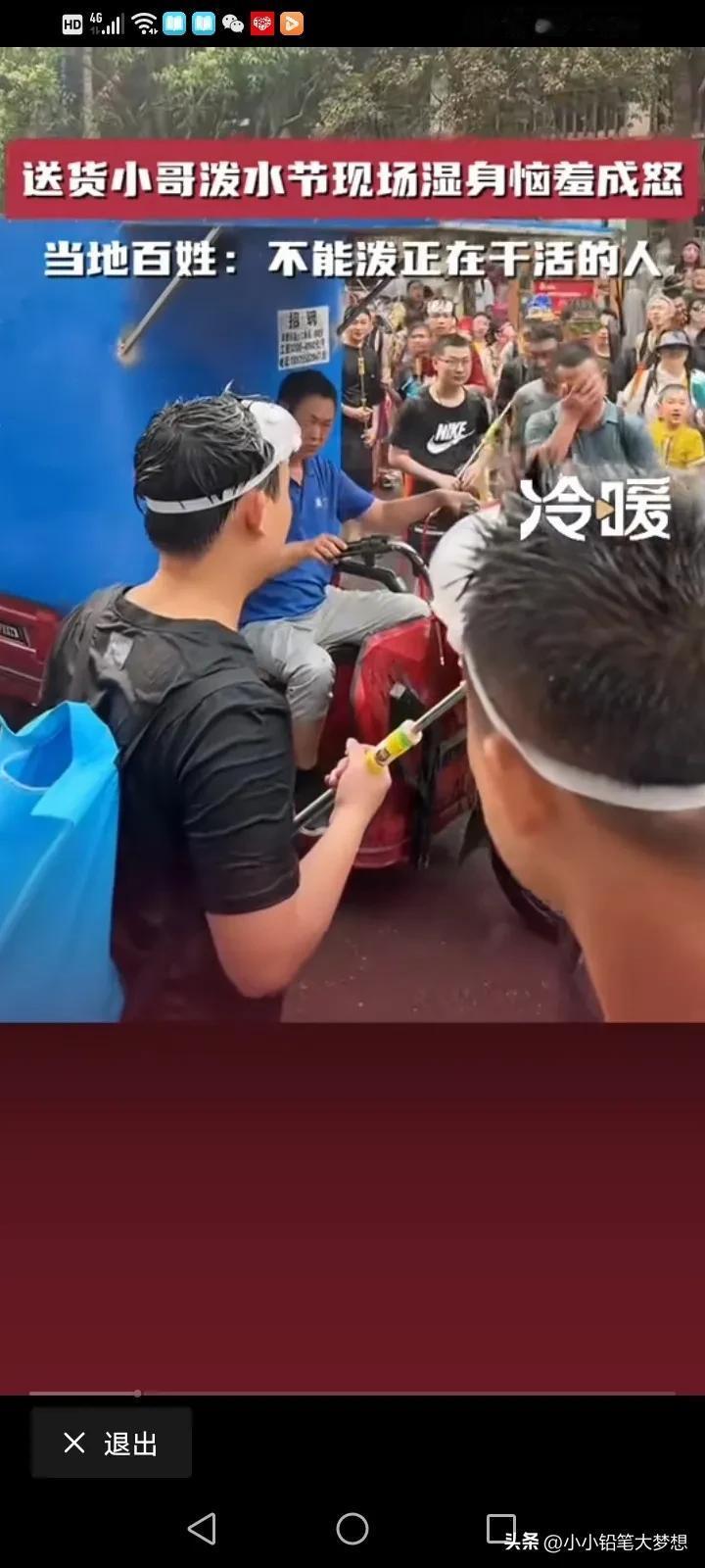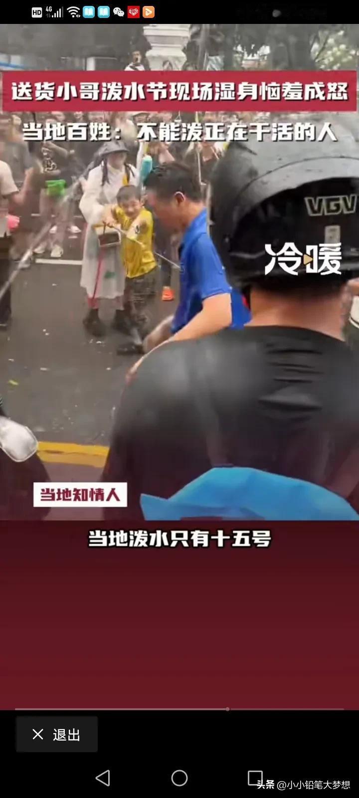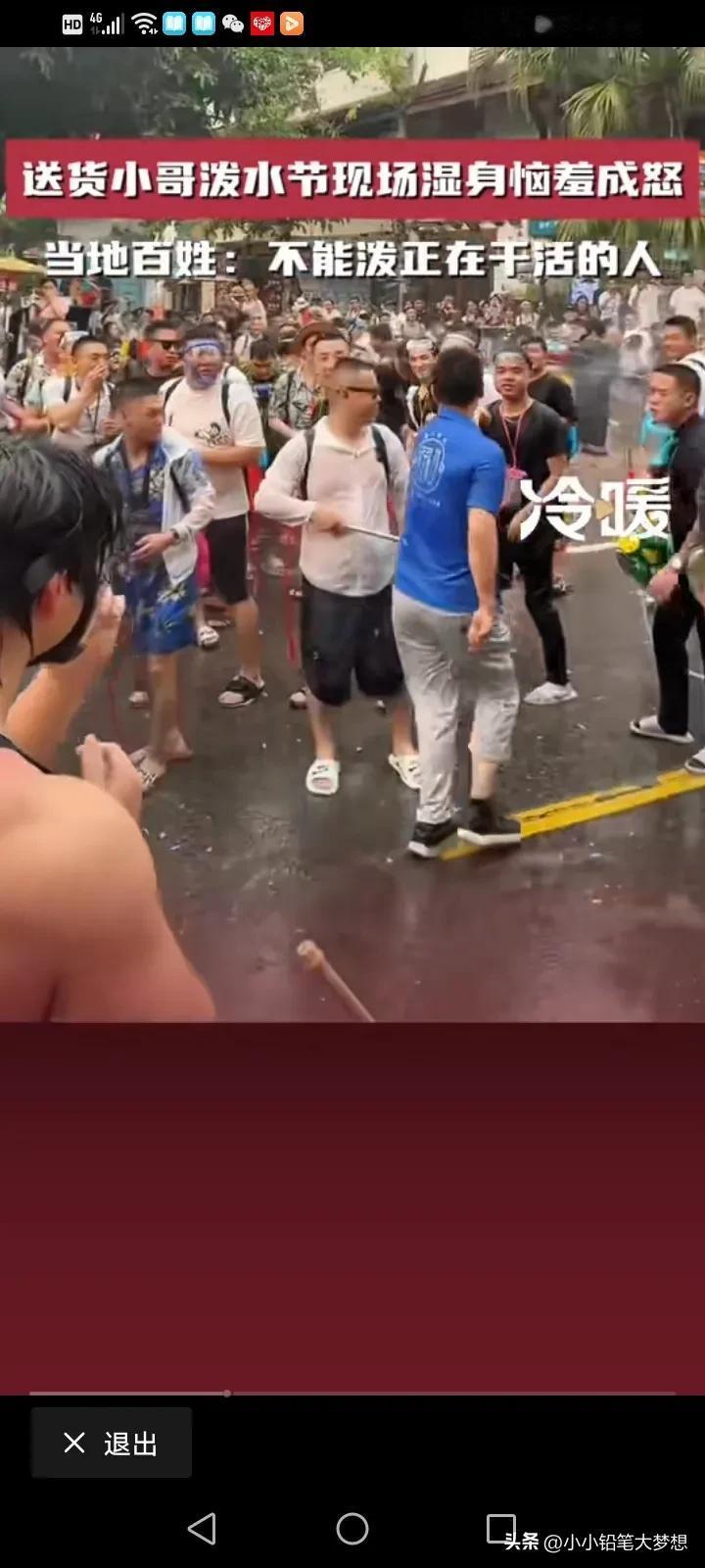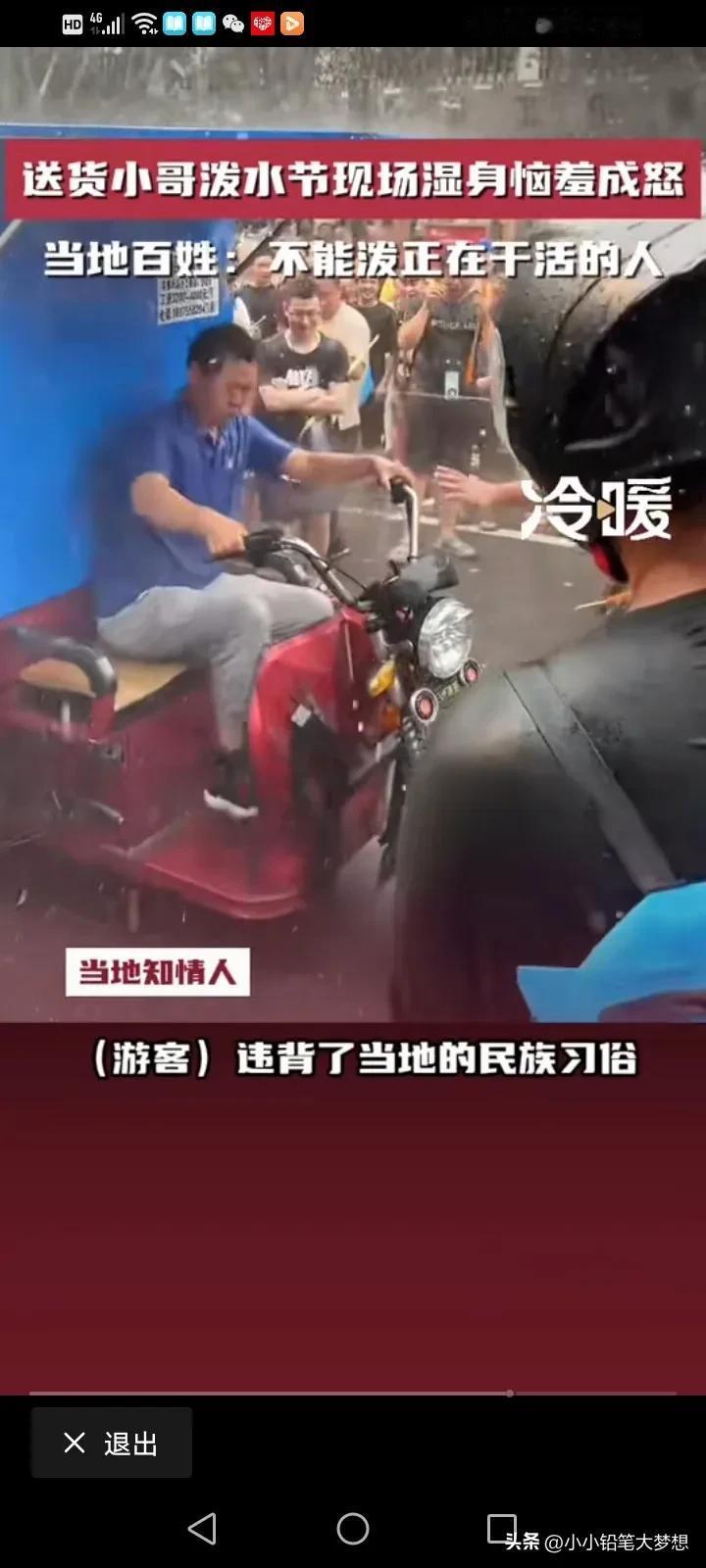 泼水节已经变味了!4月14号,云南西双版纳,一个送货的小哥被旅客围攻,大家都向他滋水,小哥现场湿身,非常生气叫大家注意点,不要这样玩,他还要去送货的。 可是边上的游客并没有把他的话听进去,反而隔着很远,还对着他滋,小哥非常生气的跳下了三轮车,对着一个滋他的指着骂,然后他又折回自己的三轮车上,一脚油门开着自己的三轮车去送货了。 而当地的知情人士说,这些游客他们已经违背了当地的习俗了,当地人不会对着小孩,孕妇,老人,还有正在干活的人故意滋水,而且泼水节真正的日期是4月15日,当天是4月14日,如果是4月15日当天怎么滋都没关系,大家都会很开心的。 试想一下,一个努力为生计奔波的人,哪有空跟你在这玩,而且他还有一车的货要送,你把他全身都弄湿了,你让他去哪里换衣服?把人家货物浇湿了,怎么和货主交待。干啥要有个度,你们有钱有空余时间是过来玩的,人家是为生活努力的活着,这玩笑不是这么开的。 刚刷到一个高压水枪把眼睛都打瞎,这就太缺德了,这玩意冲击力,可不是开玩笑的。 #评论区表情包大赛# #春日生活打卡季#