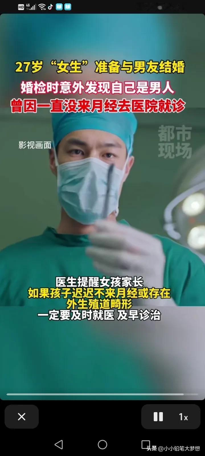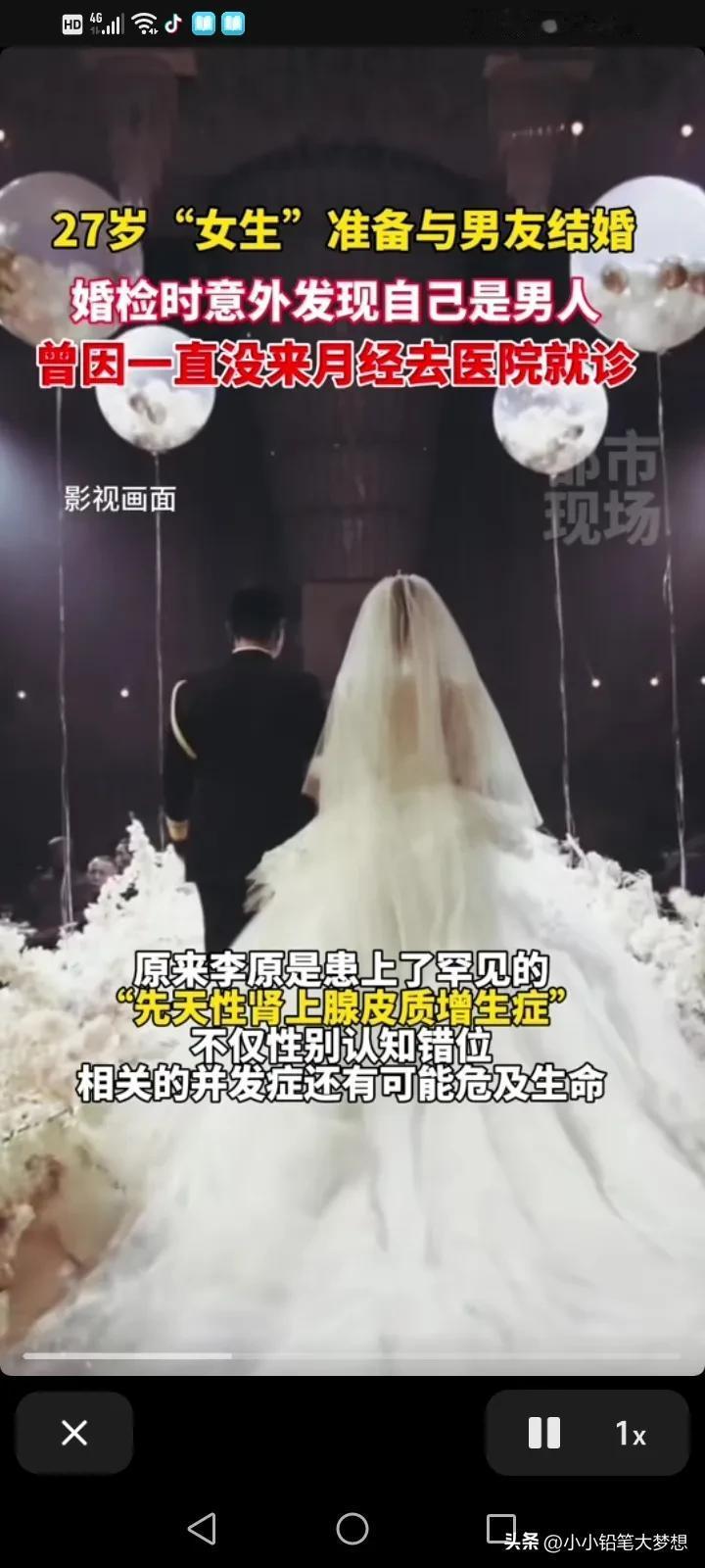 太炸裂了!武汉一名27岁的“女子”准备与未婚夫结婚的时候进行婚检查才发现自己是个男人!经检查,染色体从生物学上来说他就是个男性,他得的是一种罕见病,叫做先天性肾上腺皮质增生症,得了这种病不单只会对性别认知错位,相关的并发症还会危及生命! 其实这名“女子”18岁的时候都还没有来过月经,当时去过医院就诊过,医生说可能是卵巢早衰,让他去做一个染色体检查,但是他们家人并没有把这个事情当一回事,事情就一直拖到现在,27岁进行婚检的时候才发现问题。 也就是说在外貌上跟女性是一模一样的,有男性之“实”,而无男性之“形”,除了不能生子,其他方面应该不影响,如果她男朋友能接受丁克的话,又非常爱他的话,那还是有可能在一起的,这真的是考验爱情的时候了。 不得不说这对父母真是心大,一般现在的女孩子都比较早熟,小学六年级就开始来月经的已经很多了,18岁没有来月经才去看已经挺奇葩的,但是也没有听医生的话做进一步的检查,到27岁结婚体检才知道,现在不仅仅是结婚的问题了,相关的并发症还可能危及生命,这都快十年了,一直来没来月经都不觉得奇怪吗,感觉对自己的身体一点都不负责任。医生提醒,如果发现迟迟不来月经,还有可能存在生殖器道畸形,要及早就医和及早治疗。 #春日生活打卡季# #评论区表情包大赛#