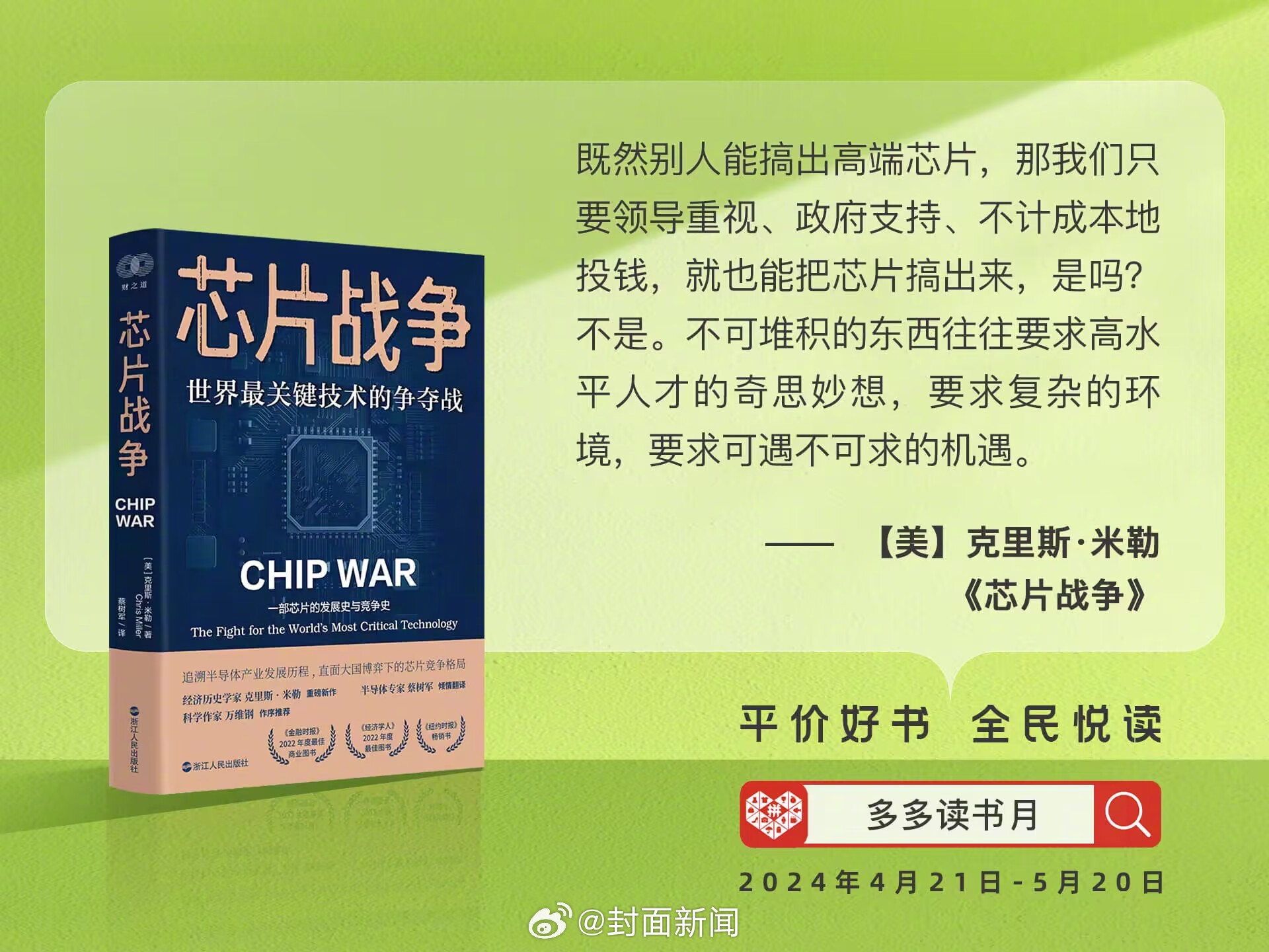 春日温暖,最宜读书。“多多读书月”趁兴而至。4月21日,“多多读书月”开启,为期一个月。从2021年4月首季活动上线至今,“多多读书月”已连续举办六季。其间,拼多多联合北京大学出版社、未读图书、商务印书馆、天地出版社、作家出版社、中信出版社、果麦、理想国等上百家权威出版社、图书出版公司,累计补贴逾6000种、2600余万册精品好书。不管身处何时何地,只要想读书,都应该满足自己这颗旺盛的求知之心。