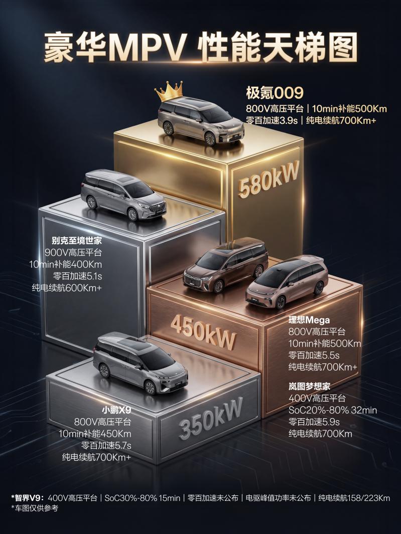 除此之外,明星们常年赶通告,出行主打一个高效,这正是现款极氪 009 的核心优势所在。其 800V 高压架构带来的补能效率和动力性能,在同级中堪称标杆,10 分钟补能 500km 的表现,让长途出行毫无补能焦虑,这也是当下众多 MPV 难以企及的水平。