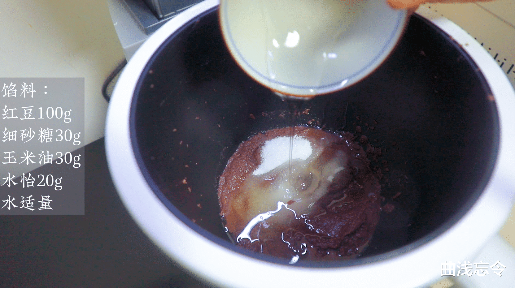 馅料:红豆100g、细砂糖30g、玉米油30g、水怡20g、水适量