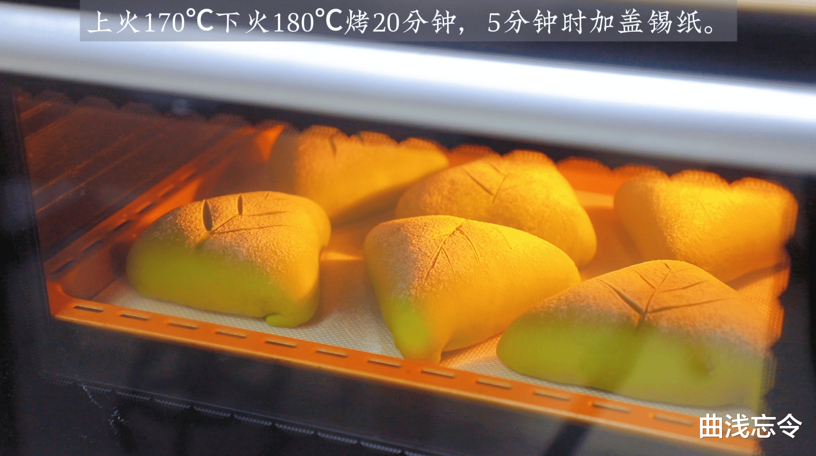 7.烤制时注意加盖锡纸,避免抹茶上色过度会偏黄不好看。