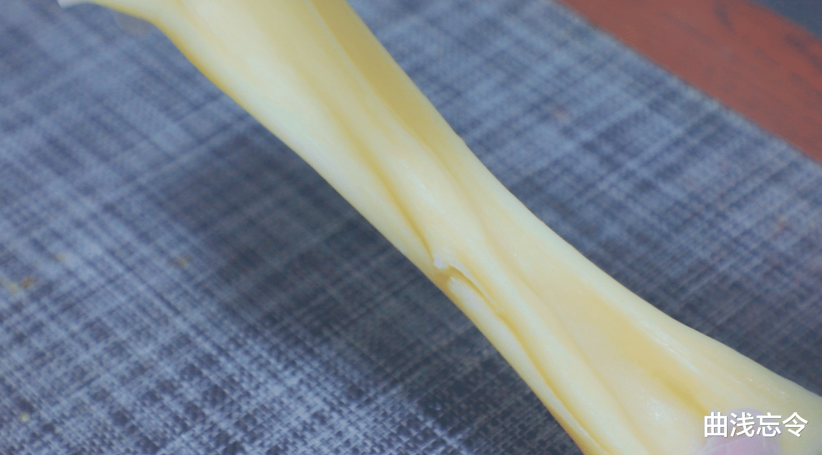 3.面团揉至粗膜时候再加黄油,避免黄油过早加入会干扰面筋的形成。要注意黄油要提前软化。