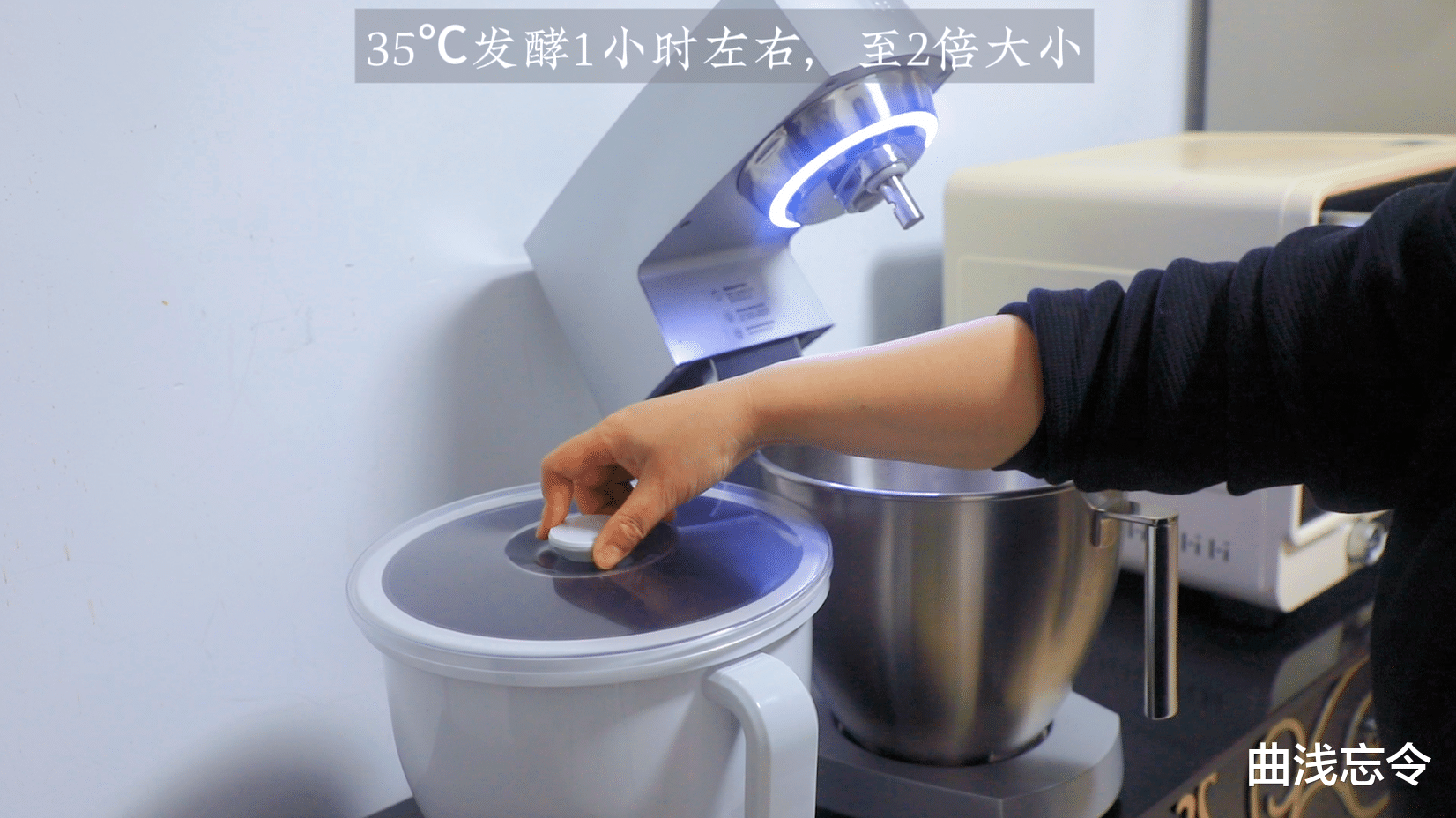 4、发酵:揉好的面团35℃发酵1小时左右至2倍大小。