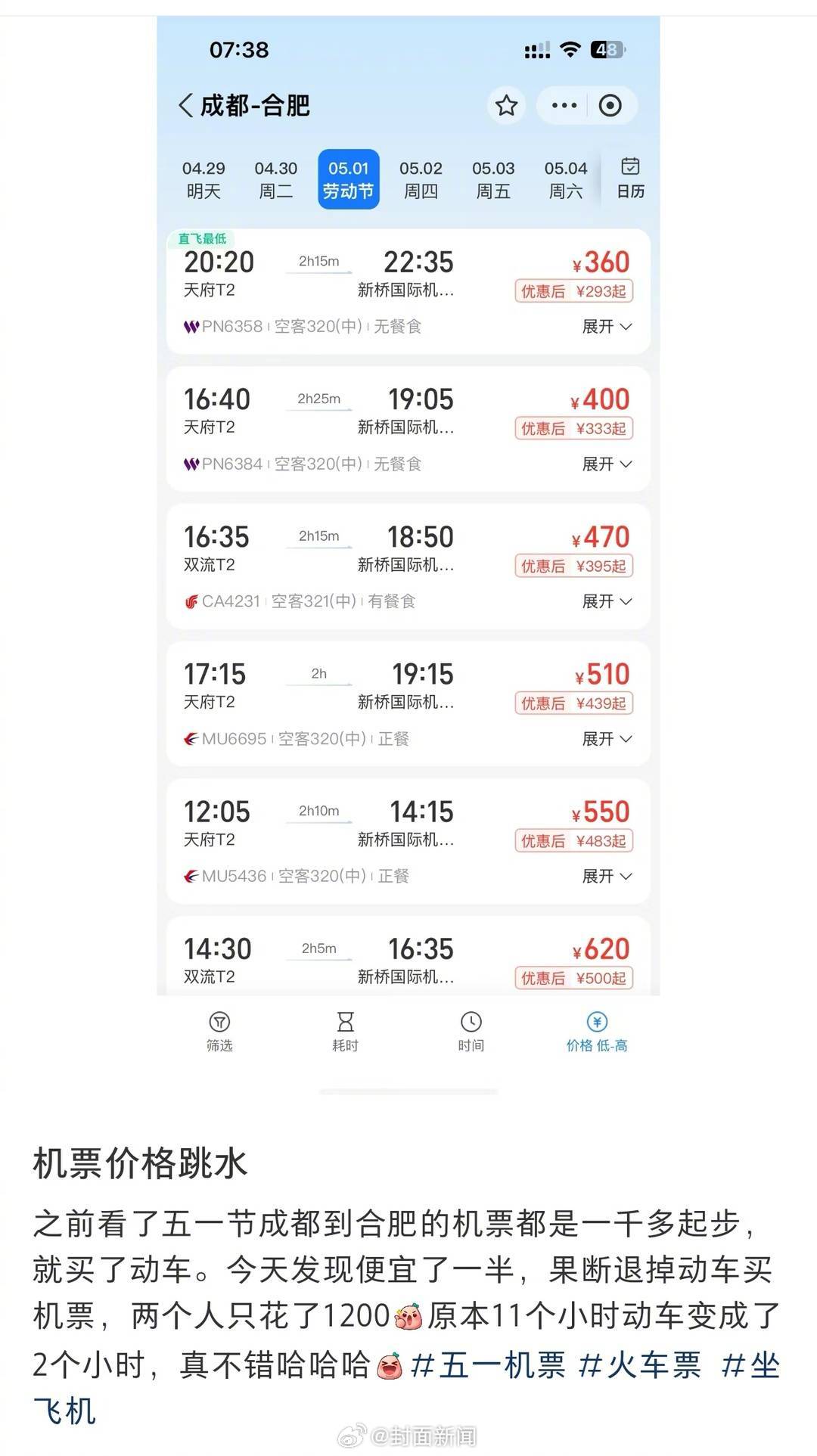 【#业内人士谈五一机票跳水原因#:根据供需关系动态变化】近期,多条热门航线票价跳水,引发关注。4月30日,业内人士表示,机票价格是根据供需关系而动态变化的。在旅游高峰、旺季,航司根据自己对市场的预期,会预先安排较淡季更多的航班运力,以应对民航需求。当临近假期,运力依然大于需求时,航司会对相应的航班进行调价,以期摊薄运力成本。