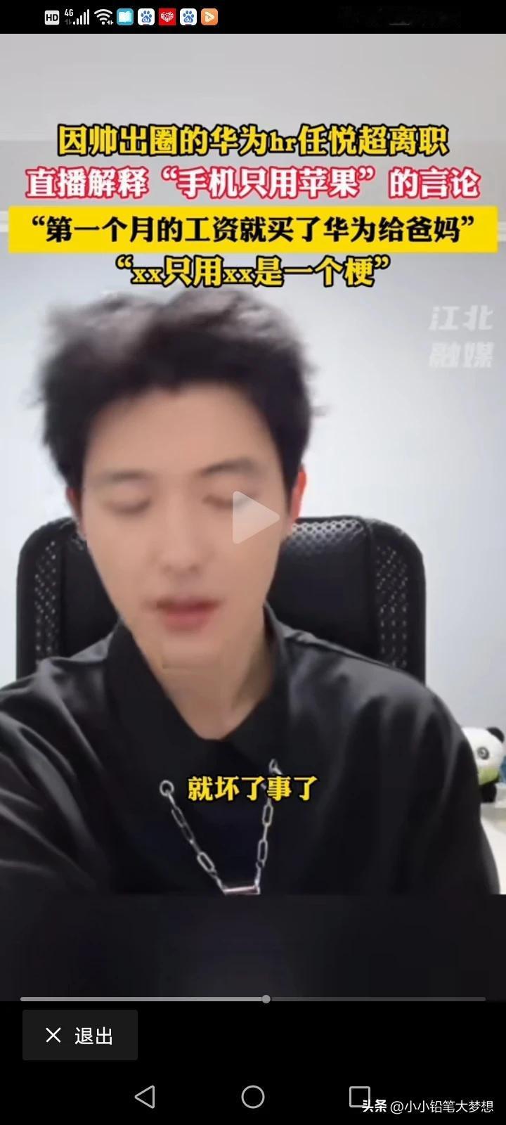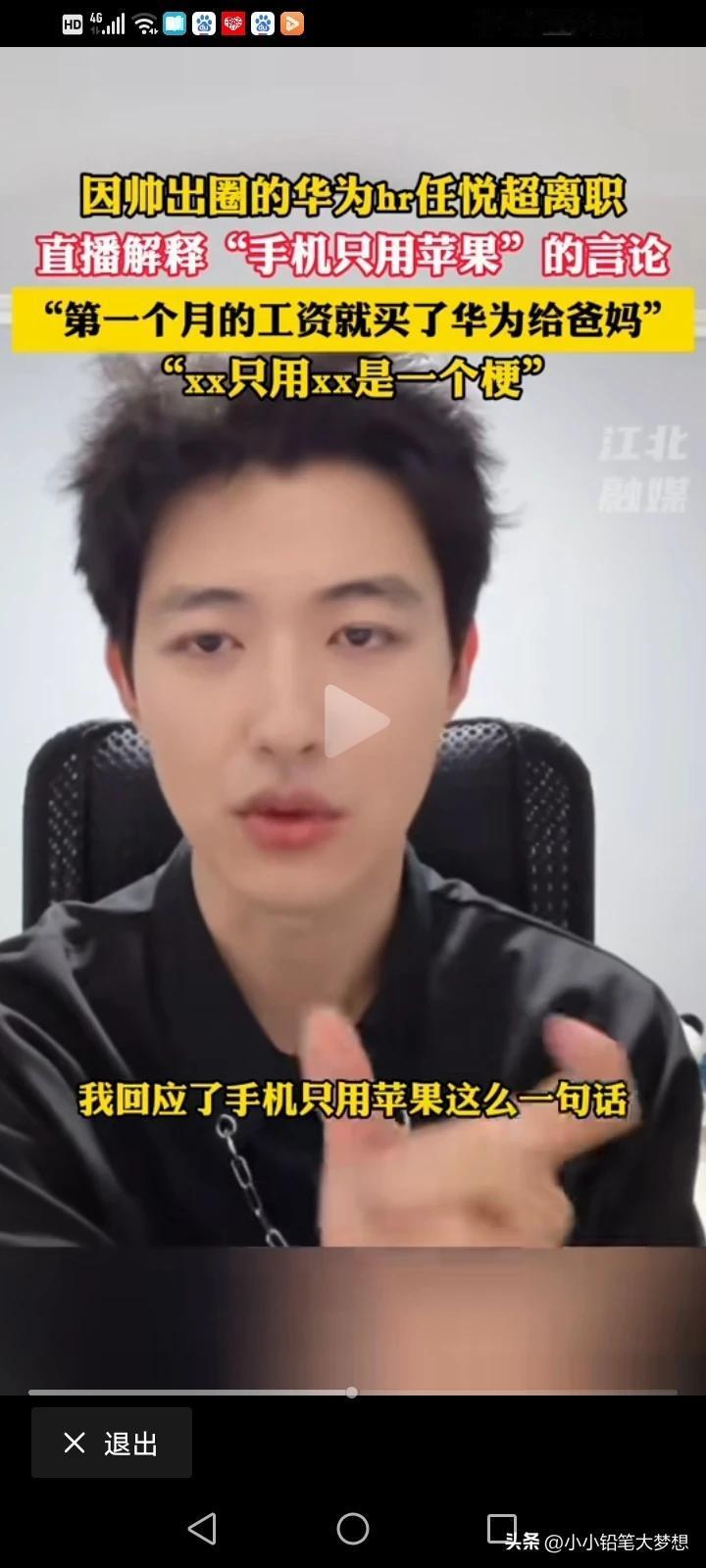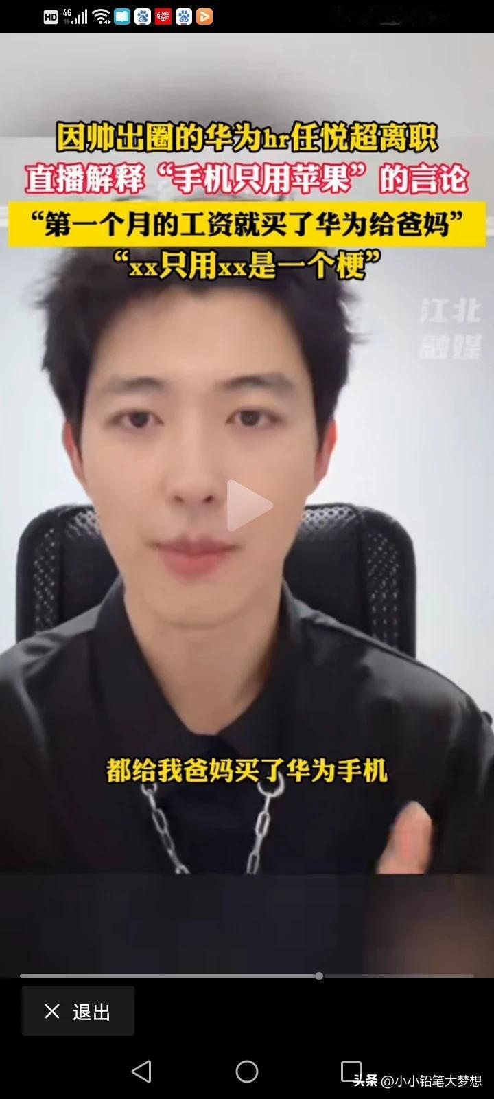 华为辞职hr发视频解释自己为什么说“手机我只用苹果”,他说这是学一个主播的梗而已,没想到因为这么一句话,就坏了事儿了,被营销号抓住不放了,他说自己到华为工作,得到第一个月的工资就是给父母买了手机,华为手机很好用。 我觉得,这样解释也洗不白!我也不知道为什么这个人就火了,因为华为?还是因为他帅?其实我觉得他是懂流量,他知道黑华为他就能火! 这种吃着华为的饭,丢下饭碗就骂娘,叫着苹果为爹的人,我是佩服了! 估计苹果手机都不敢聘用你,怕你离职后说用手机我只用小米! 好看的皮囊千篇一律 ,有趣的灵魂才能万里挑一,我想没有任何一个老板,会允许一个员工吃着自己的饭,然后又说公司的坏话,这种人不但人品有问题,道德你有问题,这种人坚决不能留! 辞了职就立刻开直播带货,然后说着这样的话,不翻车才怪。