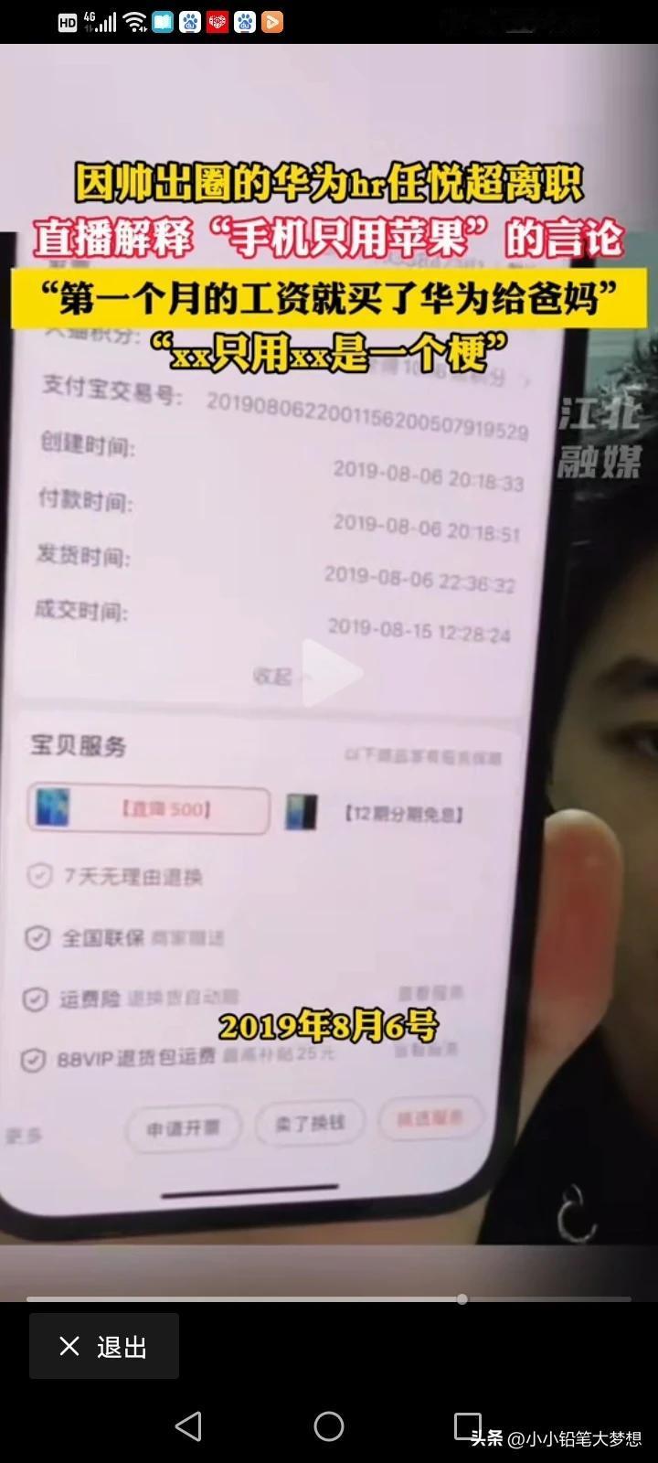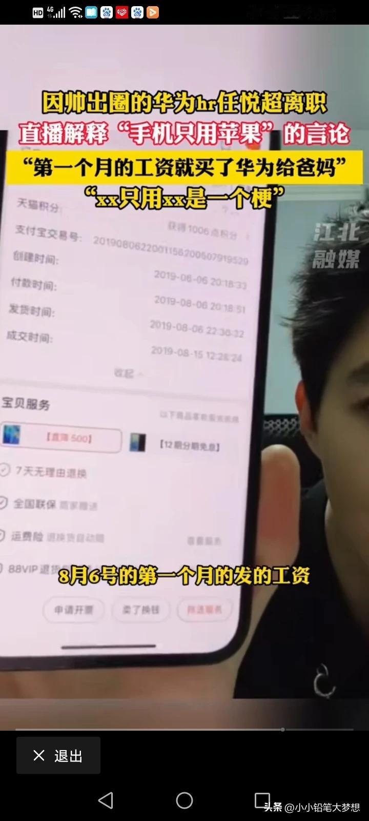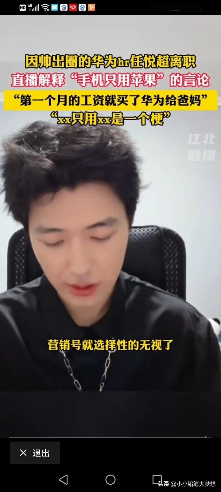 华为辞职hr发视频解释自己为什么说“手机我只用苹果”,他说这是学一个主播的梗而已,没想到因为这么一句话,就坏了事儿了,被营销号抓住不放了,他说自己到华为工作,得到第一个月的工资就是给父母买了手机,华为手机很好用。 我觉得,这样解释也洗不白!我也不知道为什么这个人就火了,因为华为?还是因为他帅?其实我觉得他是懂流量,他知道黑华为他就能火! 这种吃着华为的饭,丢下饭碗就骂娘,叫着苹果为爹的人,我是佩服了! 估计苹果手机都不敢聘用你,怕你离职后说用手机我只用小米! 好看的皮囊千篇一律 ,有趣的灵魂才能万里挑一,我想没有任何一个老板,会允许一个员工吃着自己的饭,然后又说公司的坏话,这种人不但人品有问题,道德你有问题,这种人坚决不能留! 辞了职就立刻开直播带货,然后说着这样的话,不翻车才怪。