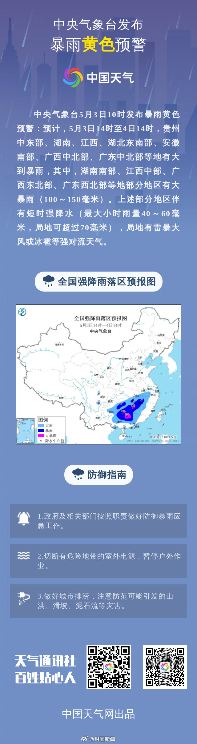【平安出行!#五一返程多地将有大暴雨#】今天开始,新一轮大范围强降雨天气又又又又来了。中央气象台预计,“五一”假日后期(3日至5日),贵州中东部及江汉南部、江淮、江南、华南等地将有大范围强降雨和强对流天气过程;湖南、江西、广西、广东等地部分地区有暴雨或大暴雨。#数据见证五一假期出行热度#(中国天气网)