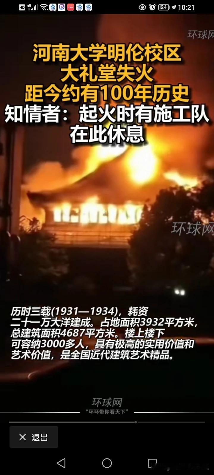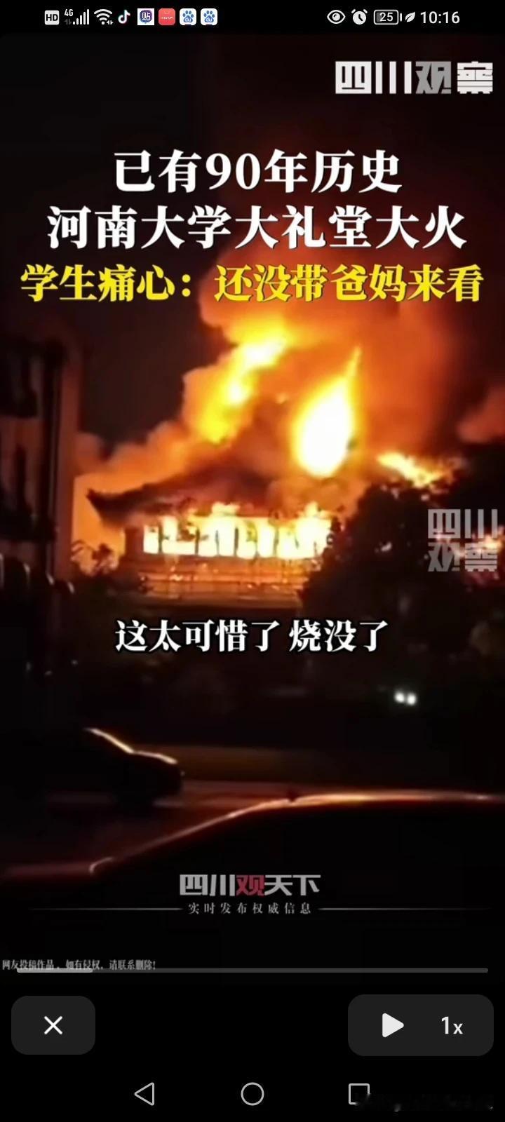 太可惜了,有着90年历史的河南大学明伦校区的百年礼堂一夜之间全部烧毁,没毁于战乱,却躲不过一些庸才,大礼堂承载了多少河大学子的青春记忆。 学生说,看着就想哭了! 近百年的文物,这么具有标志性的建筑物,居然没有好好保护好,必须严查起火原因。