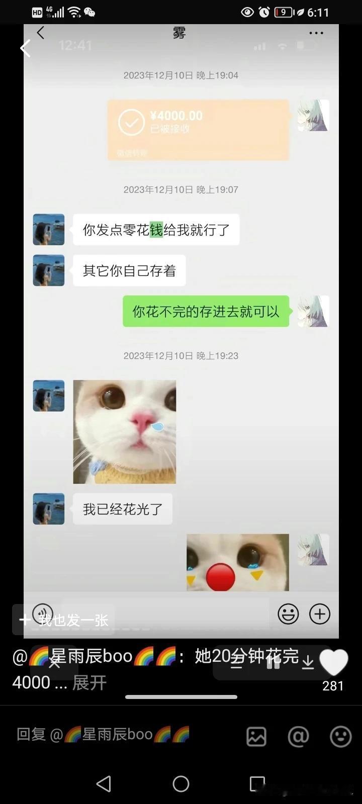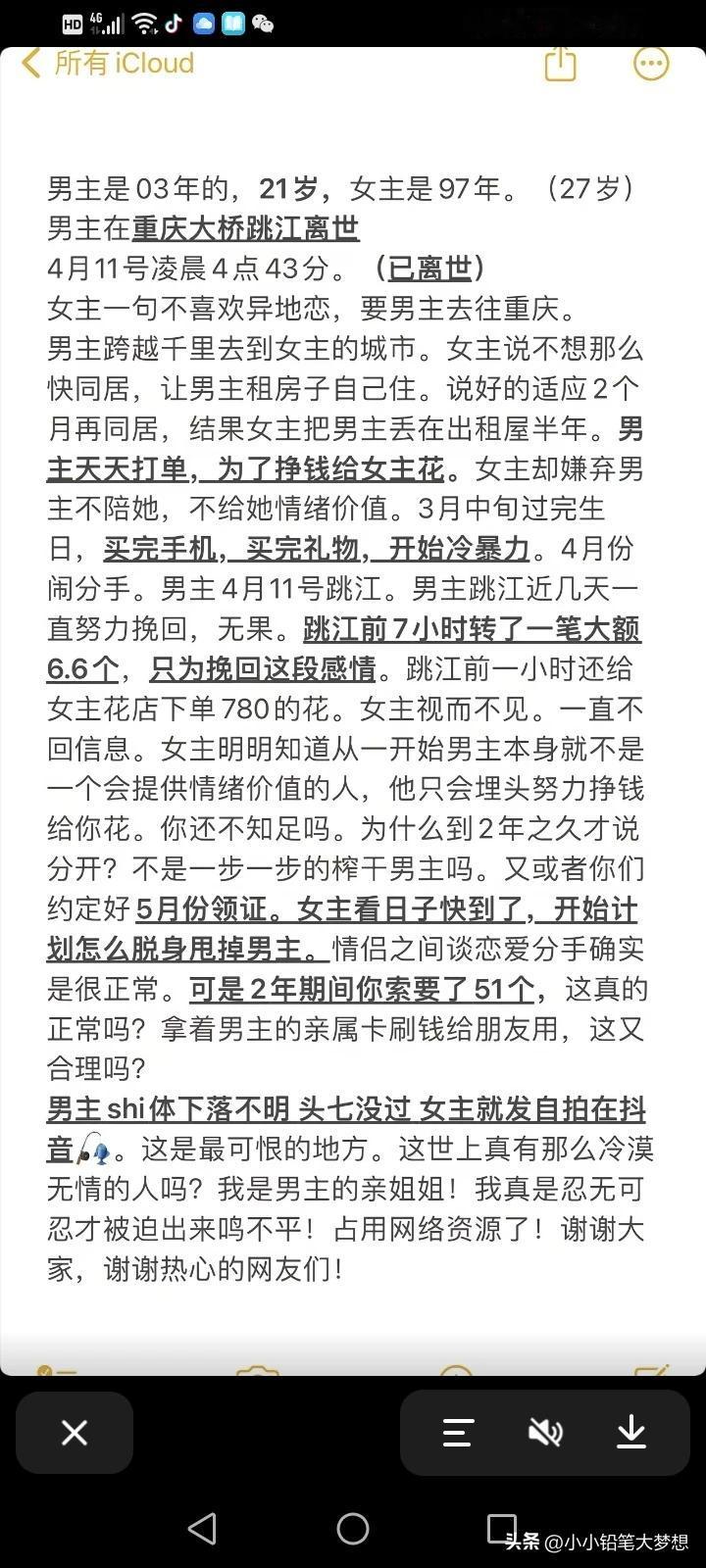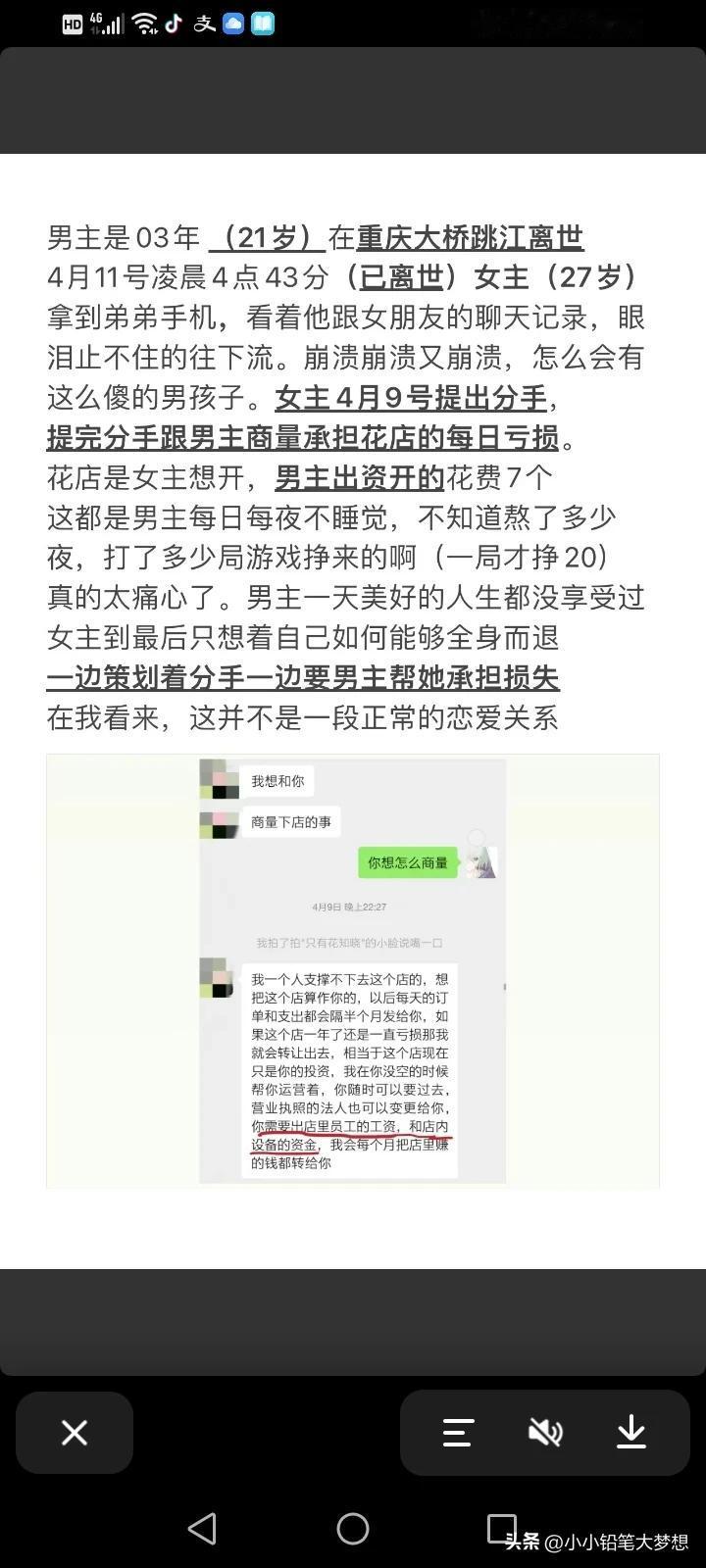 胖猫为了这女跳桥一点都不值得,21岁毕业没多久,就赚了那么多钱,却全给了这个女的,为这个女的买手机,买礼物,买金子,买包,大额转账50多万,结果被这个女的甩。 8000把91%胜率,可以说,在打游戏方面是有天赋的,这比大多数人都强,他赢了那么多人但是他却输给了这个女人,还为她丢了命! 就因为“我不要异地恋”,他居然跑到她的城市定居,住着一个小小的出租房,里面连被子都没有,女的说自己要开花店,要他赞助,他就没日没夜的打,睡醒就代练,陪玩,手机外卖记录,十块钱的螺蛳粉,为了拼单少5毛钱,多等了几个小时,好评返几块钱也评。 为了打游戏赚钱,还熬到吐血,别人催他看医生,他却说没钱,因为钱都给女朋友了,他收到别人给他转打游戏的钱,他第一时间就转给了这个女朋友,别人说你不要那么拼命,他却说要和女朋友结婚,要攒着,要给她一个家。 这个女的跟胖猫的聊天,不是在要钱,就是在要钱的路上。 这女的可能就是个高手,喜欢玩弄伤害欺骗这样单纯的男孩。有手有脚的,还没结婚就骗人家钱,还觉得应该,而且人没了,事后还一点愧疚感都没有,我觉得这世上是有因果报应。