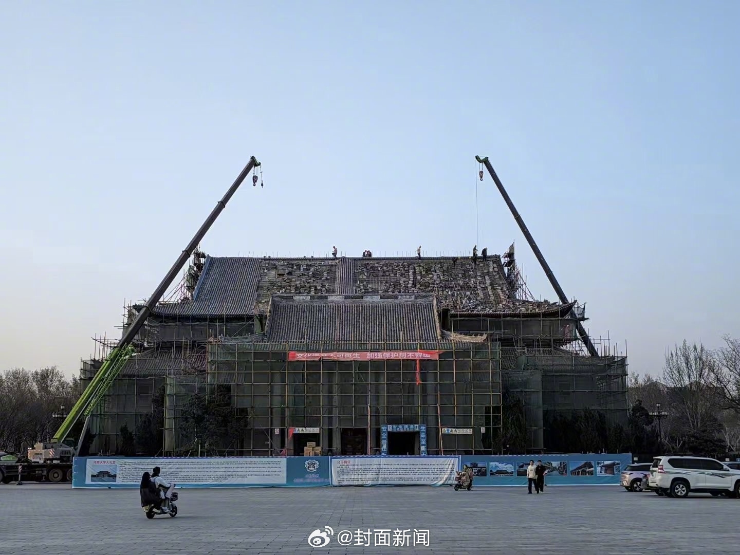 【#河大称火灾当晚礼堂内无施工人员# 初步推测起火因电路老化】#河南大学大礼堂火灾反思#5月2日晚间,河南大学明伦校区大礼堂发生火灾,引发关注。大礼堂维保修缮工程涉事公司法定代表人徐长林称,火灾当晚礼堂没有施工人员,“施工队下班5点多钟人家就走人,6点就把电闸拉了”。河南大学回应称,火灾时礼堂内没有施工人员,初步推测起火原因可能与修缮过程中的电路老化有关。(央广网)