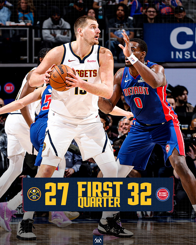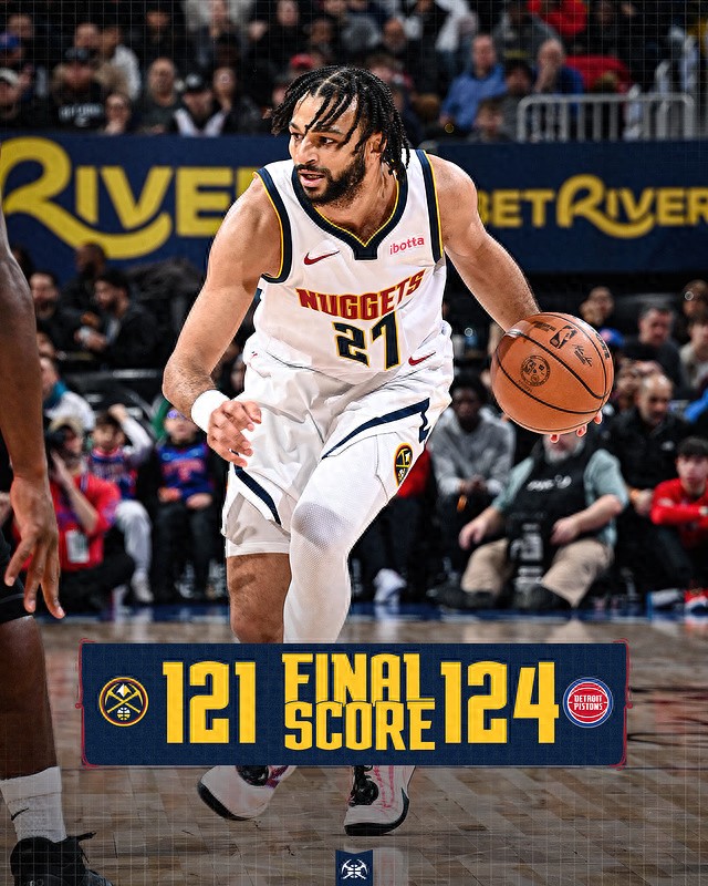 掘金被活塞双杀!穆雷空砍32分8助,约基奇24+15+4,CC29分10助