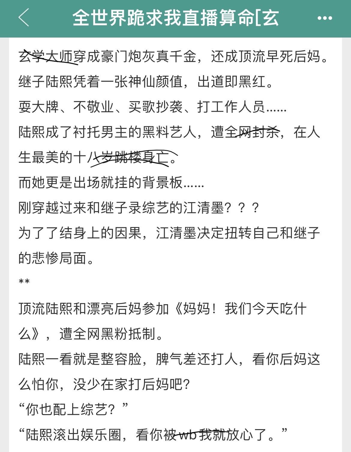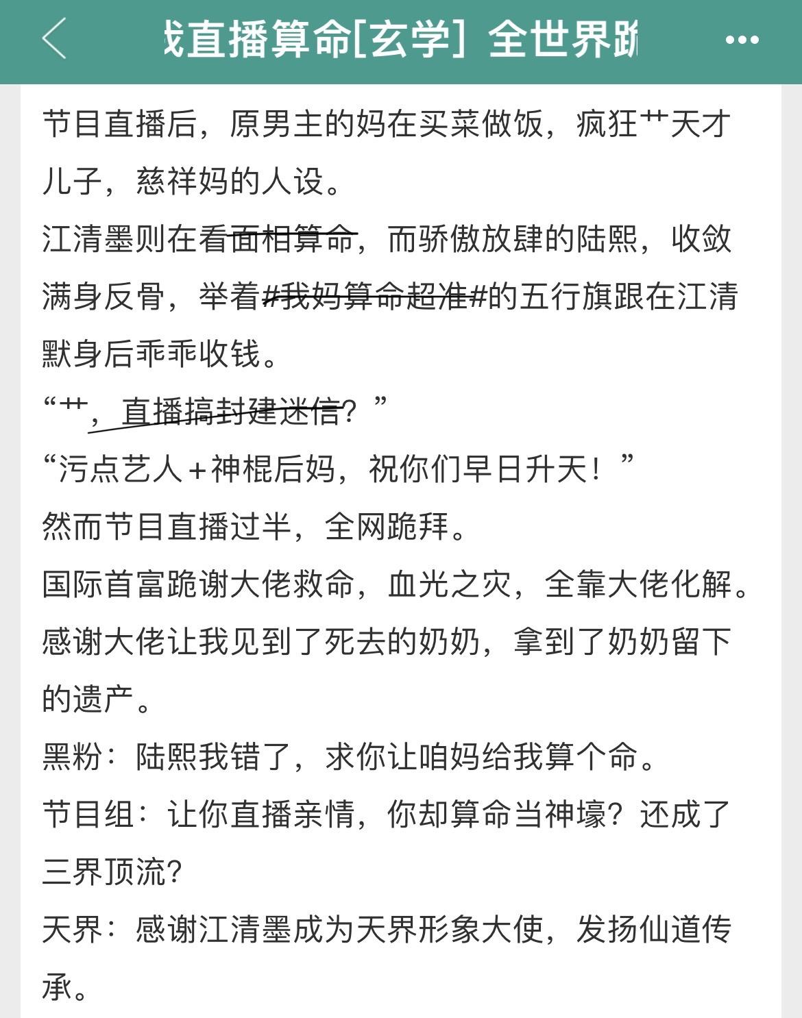 直播+玄学+亲情流爽文!直播+玄学+亲情流爽文! 书名:《全世界跪求我直播算/-/-/命[玄学]》 作者:清清一色 标签:穿越文、打脸、爽文、玄学文、直播文