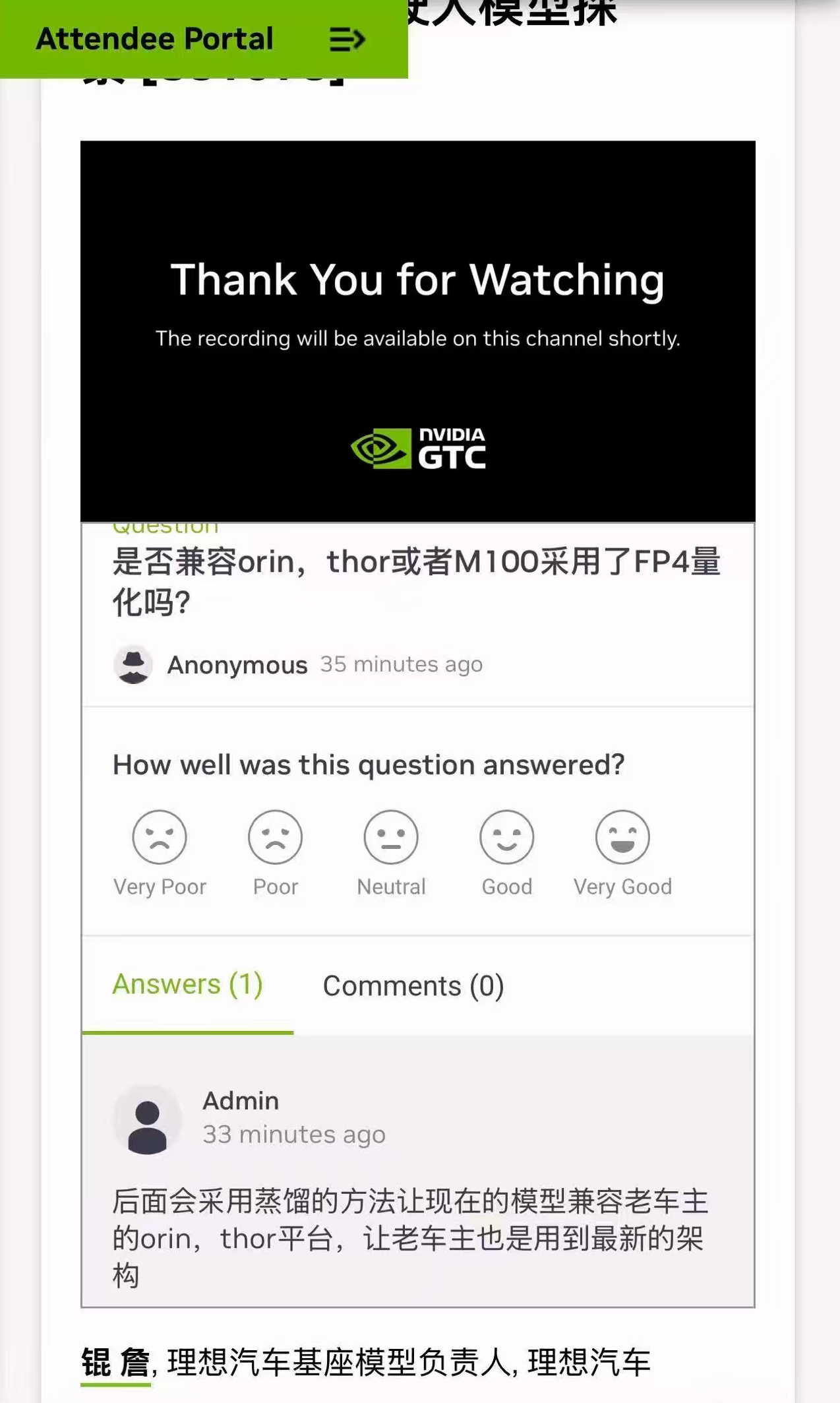 尽管MindVLA-o1尚未问世,理想汽车却给老车主吃下了“定心丸”。演讲结束后的问答互动环节,有人问道,MindVLA-o1“是否兼容Orin,Thor或者M100采用了FP4量化吗?”对此,管理员回复称,“后面会采用蒸馏的方法让现在的模型兼容老车主的Orin,Thor平台。让老车主也能用到最新的架构。”
