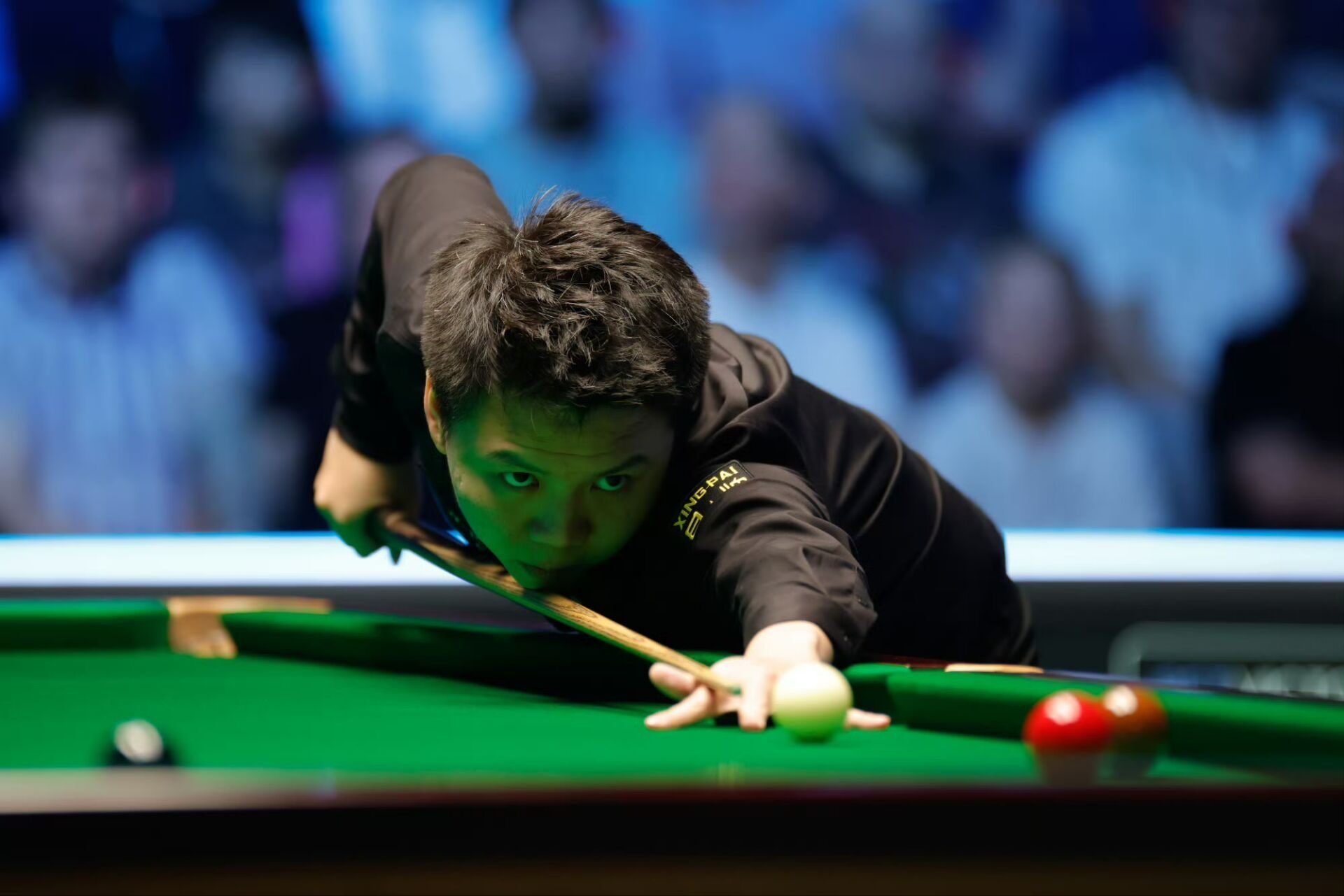 中场休息回来,第五局奥沙利文打出单杆62分中断进攻,周跃龙两次上手完成清台,以67-62逆转,第六局奥沙利文上手打出单杆94分,周跃龙做到单杆50+有点难,奥沙利文简单失误太多。