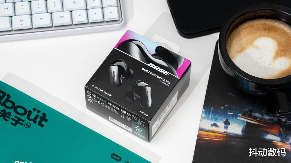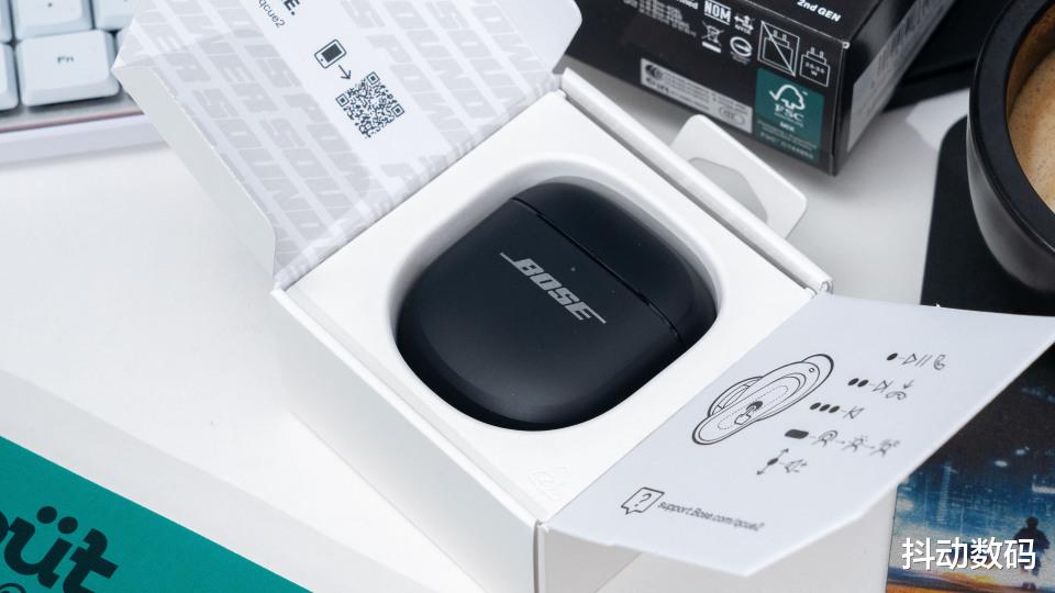 包装就是小小的一个盒子,和头戴式BOSE QC Ultra II风格类似。包装上可以看到产品图片。