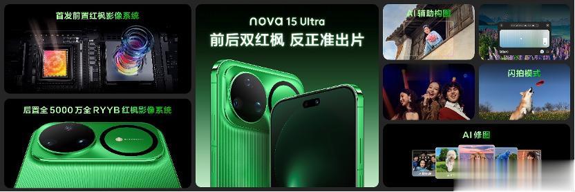 nova巅峰焕新之作,nova 15系列 「枫」头正劲全新的nova 15系列以突破升级的前后置影像、时尚先锋的美学设计及深度融合鸿蒙操作系统的AI体验,全面回应年轻用户对潮流个性的追求及自我突破的渴望,引领全场景体验再升级。