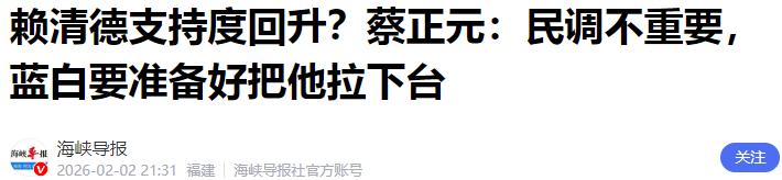 赖清德支持度回升?蔡正元:民调不重要,蓝白要准备好把他拉下台