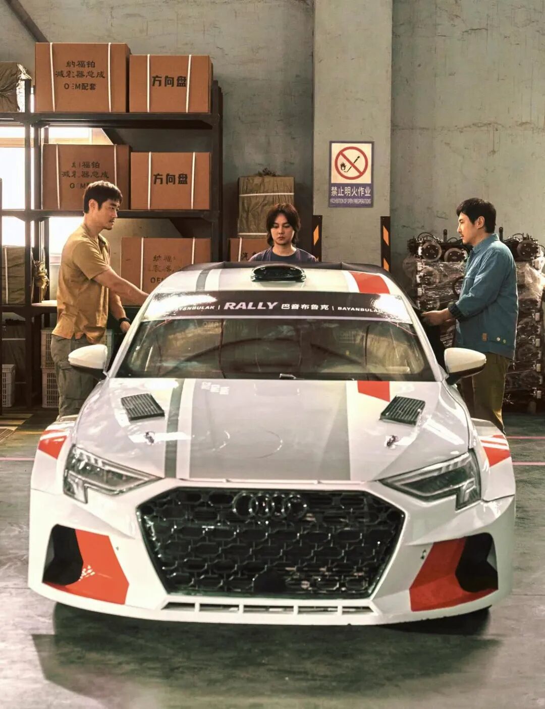 影片核心战车为一汽奥迪A3拉力赛车,原型是奥迪A3 Sportback量产车,按国际拉力赛事标准深度赛道化改装;与之对标的8.5代高尔夫GTI拉力赛车,原型即为大众8.5代高尔夫GTI,这两款车主要构成了传统燃油性能车阵营。奥迪RSQ8、奥迪RS7、奥迪A8L则代表了传统豪华品牌形象;三菱EVO 4作为90年代WRC赛场上的常客,也以情怀客串形式出现。除此之外,领克Z20是推动“油电对决”主线的核心新能源赛车,理想MEGA以大空间、超快充优势承担车队后勤角色,比亚迪汉、蔚来萤火虫等车型则在城市戏份中自然露出,完成品牌曝光。