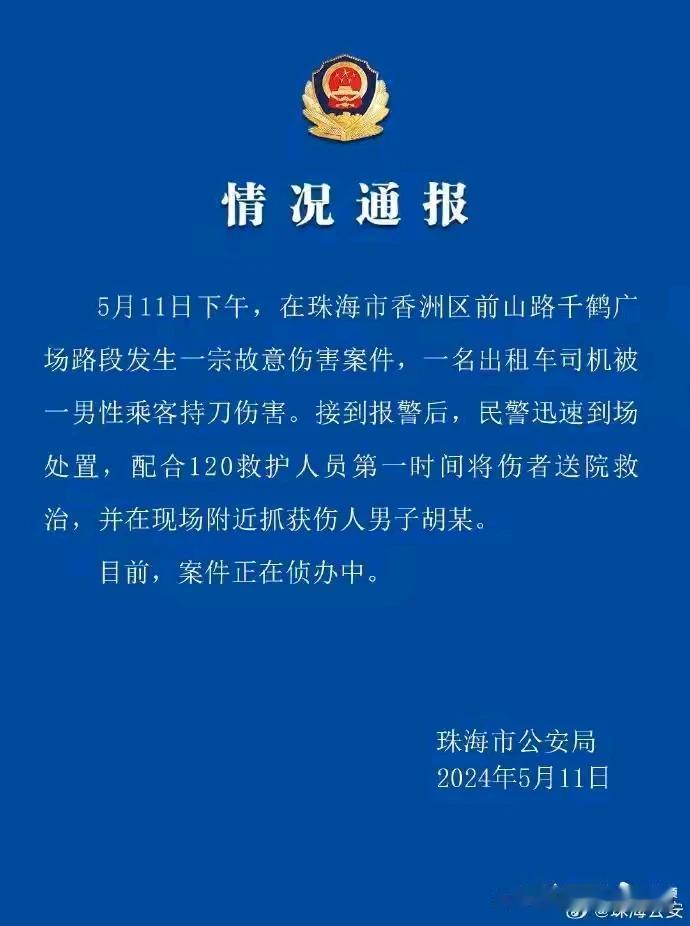 冲动是魔鬼啊,珠海出租车司机被捅的那一幕曝光了,这个黑衣男子真的很恐怖,上一秒很正常,都没什么交流,下一秒乘客就掏刀猛戳,而且一捅就捅十几刀。 后来,这名司机在红绿灯路口的时候自己把车门推开,然后爬了出去,但是他的衣服已经被血染透了,而这名行凶的男子就从副驾驶下的车赶紧逃了! 市民看到了之后都是懵逼的,反应过来赶紧报警,不过很快,行凶的黑衣男子很快就被警察抓获了,而珠海警方也发布了警情通报。 这是故意伤害啊,到底什么原因这么恶毒?据说就是因为小钱,网约车30块钱就搞定了,而出租车却要50块钱,黑衣男子不同意,所以就发生了这一幕。 但我就觉得很奇怪了,就算发生口角或者是肢体冲突,这也正常,但是他为什么出门还带把刀呢? 看来出租车还是像以前一样,装一个铁栏为好。 唉,冲动是魔鬼!后半生自己也废了!出门在外,低调点好,不要戾气那么重,20块钱把自己送进去真的不值啊!