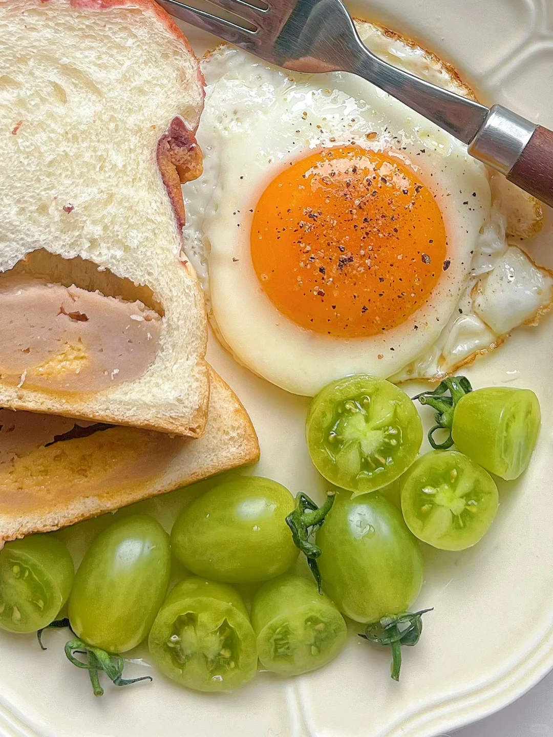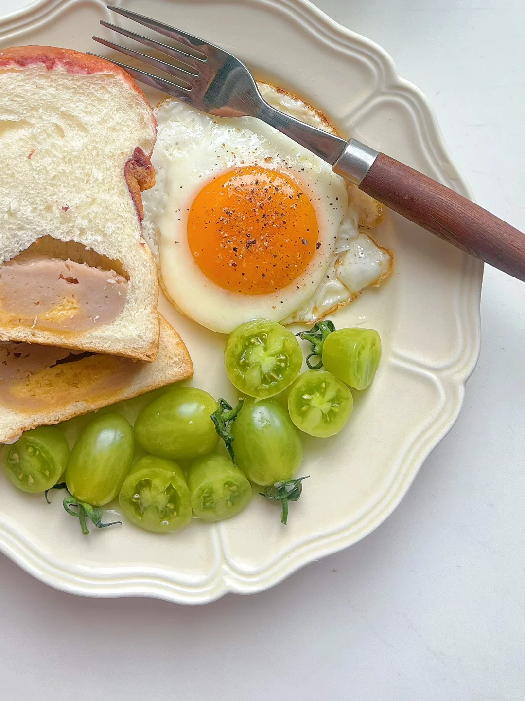 这葡萄番茄太好吃啦!拼拼凑凑的早餐