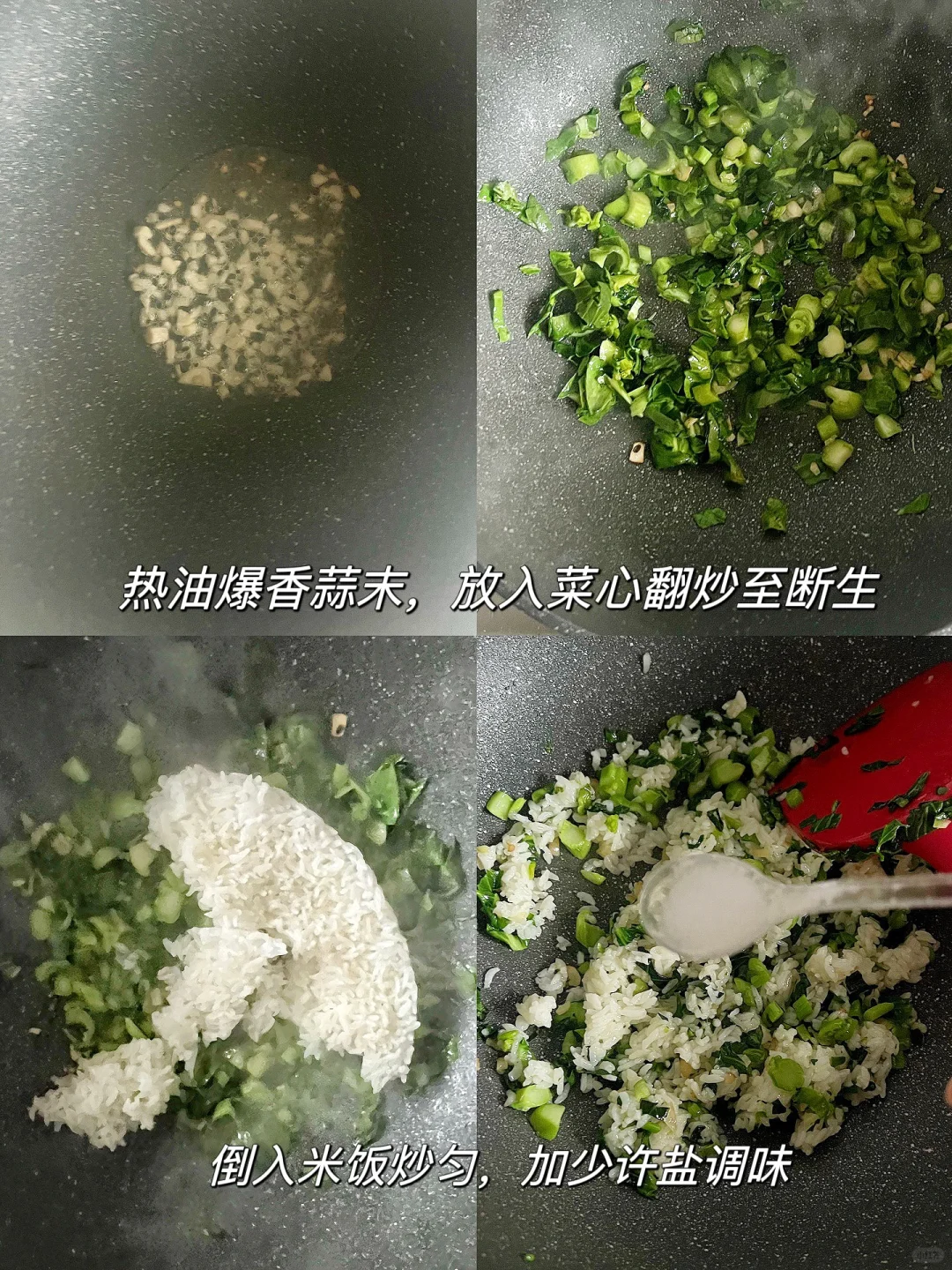 热气腾腾的三餐 以前炒饭总是会放各种各样的料 今天的食材只有嫩嫩的菜心、蒜末和一点点盐 口感超出我的预期,真的是太香了 做法如图 姐妹们快去做!