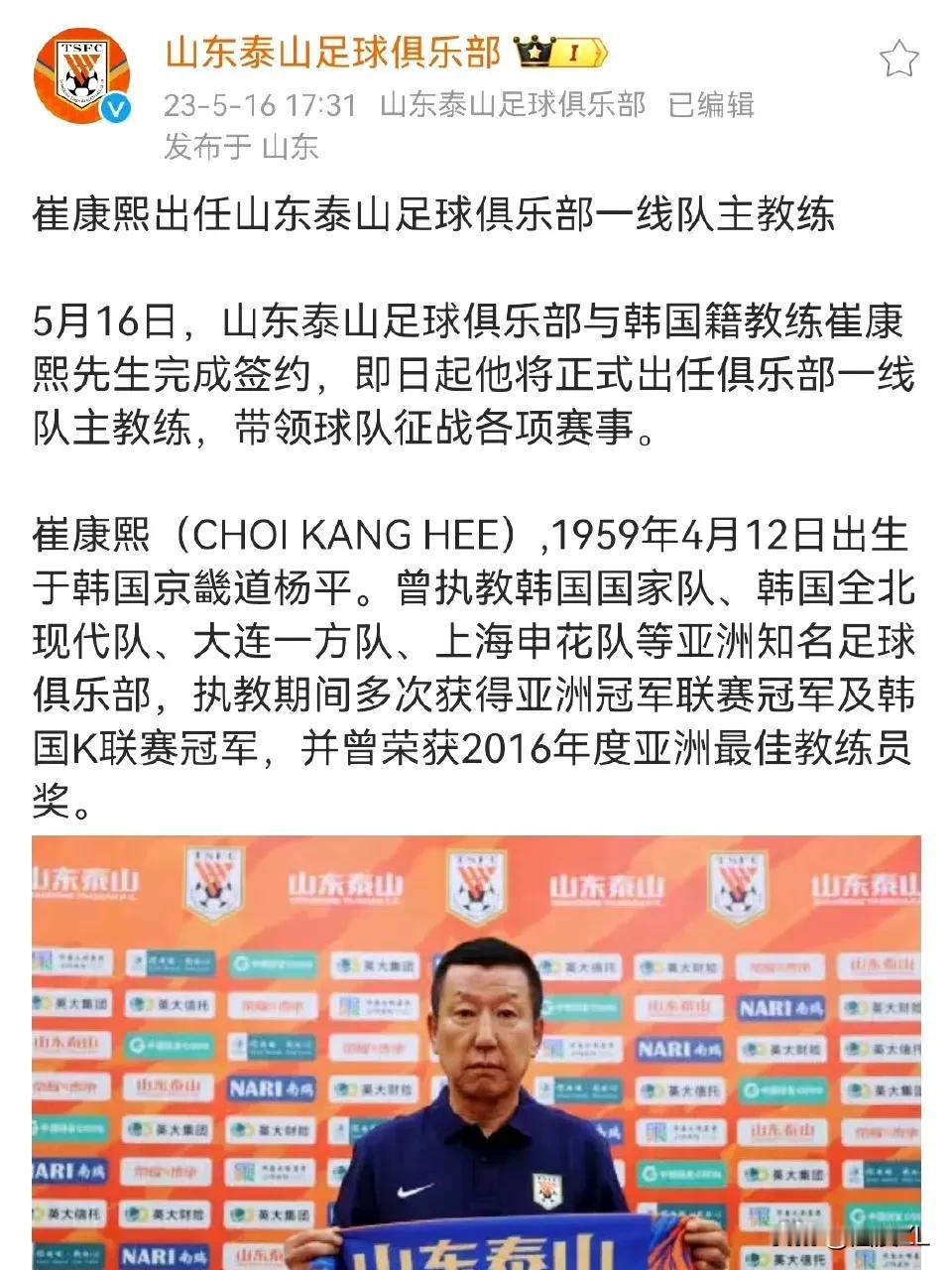 双喜临门,今日山东泰山队注定要主场奏凯。 喜事1:今天是崔康熙上任山东泰山队主帅一周年纪念日。去年今日,山东泰山正式与崔康熙完成签约。 喜事2:中国足协官网发布对山东泰山队的表扬信,重点表扬了泰山队工作人员、球员在与武汉三镇的比赛中积极参与救治对方伤员的行为。