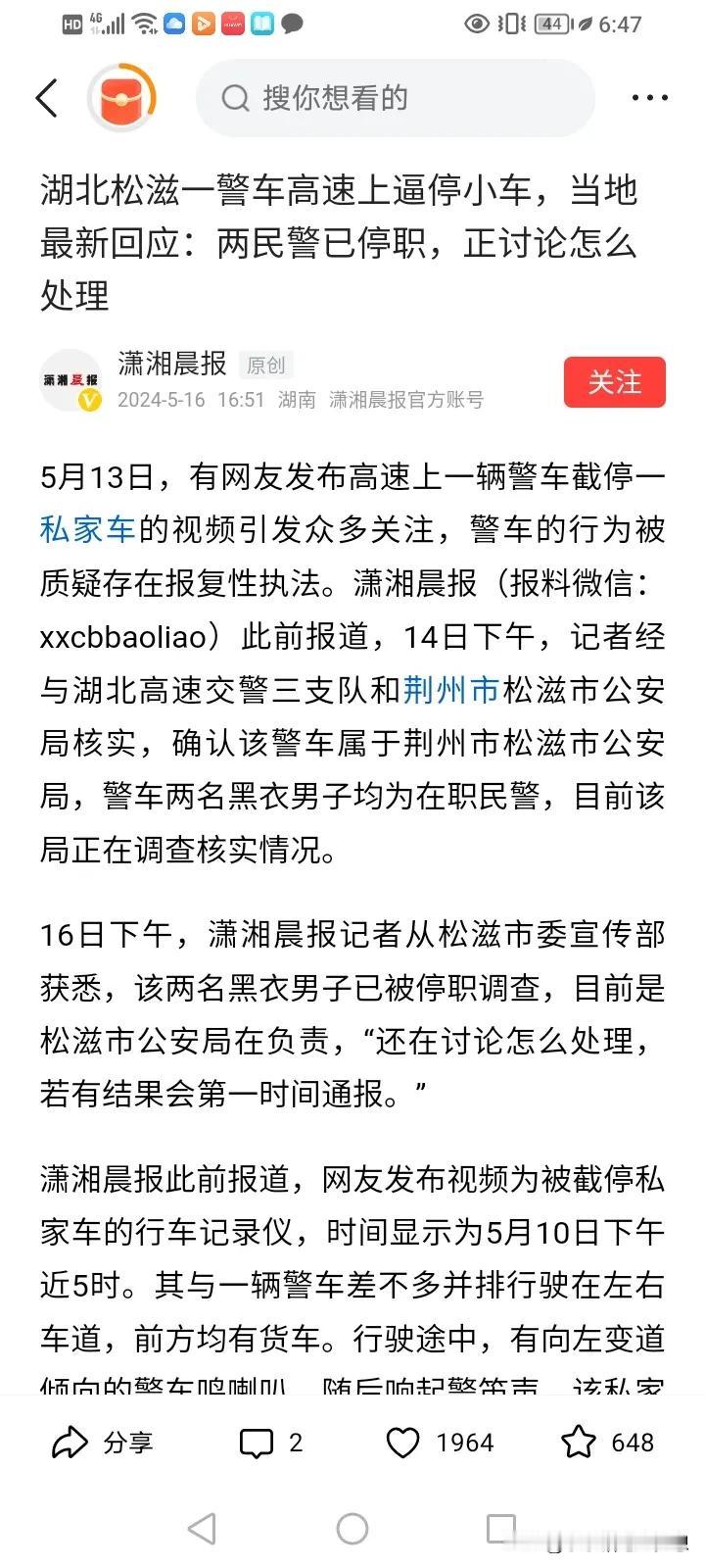 警车在高速上逼停小车他们是荆州市松滋市公安局,两名黑衣男子均为在职民警,现在已经停职了,我就不明白了,时间都已经过去了那么久,还在讨论怎么处理? 这事还要怎么讨论呢? 还没有想好理由吗? 正常的公安局出现这样的问题,第一时间就对外回应,如果真是滥用职权,那就承认呗,我没想到这事拖了这么多天,还没有最终的回应。[捂脸]