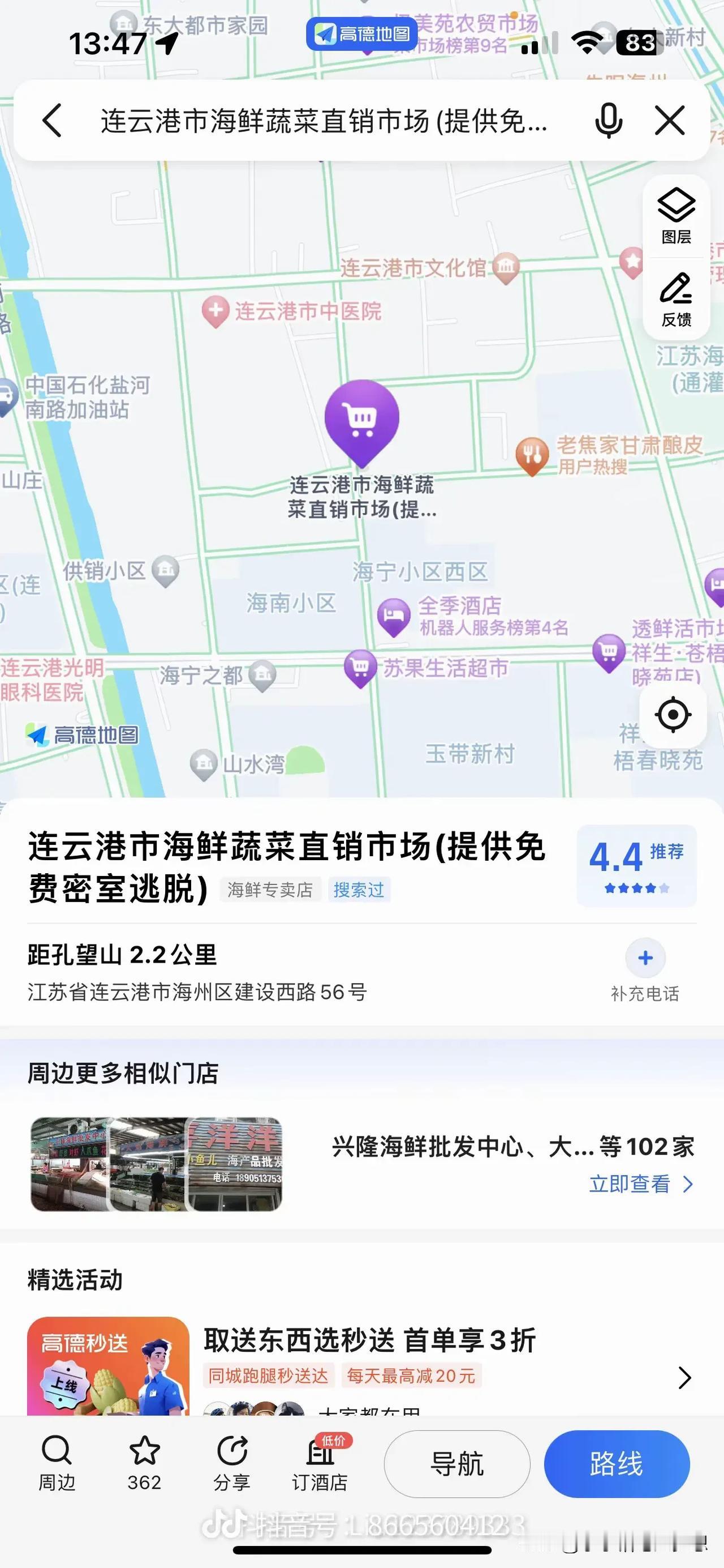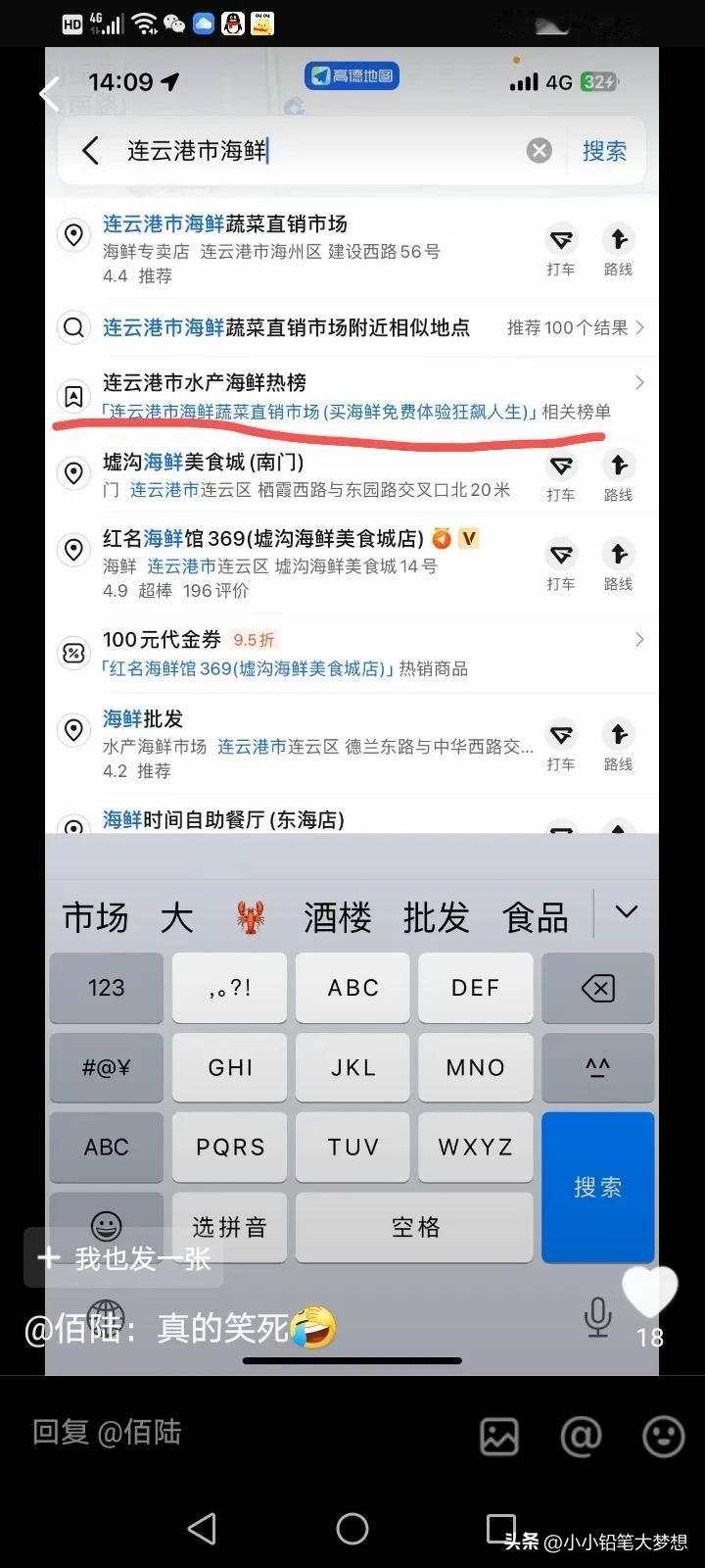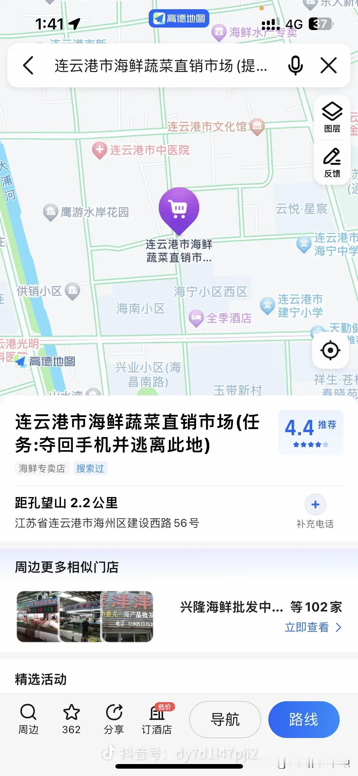 狂飙兄弟打假连云港海鲜市场,没想到最大的赢家居然是高德!看看高德是怎么操作的,简直笑死人了!高德在这个地址后面备注了多个字条“买海鲜免费体验狂飙人生”,“免费提供密室逃脱”“任务:夺回手机并逃离此地”! 这营销绝了!