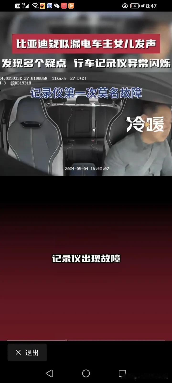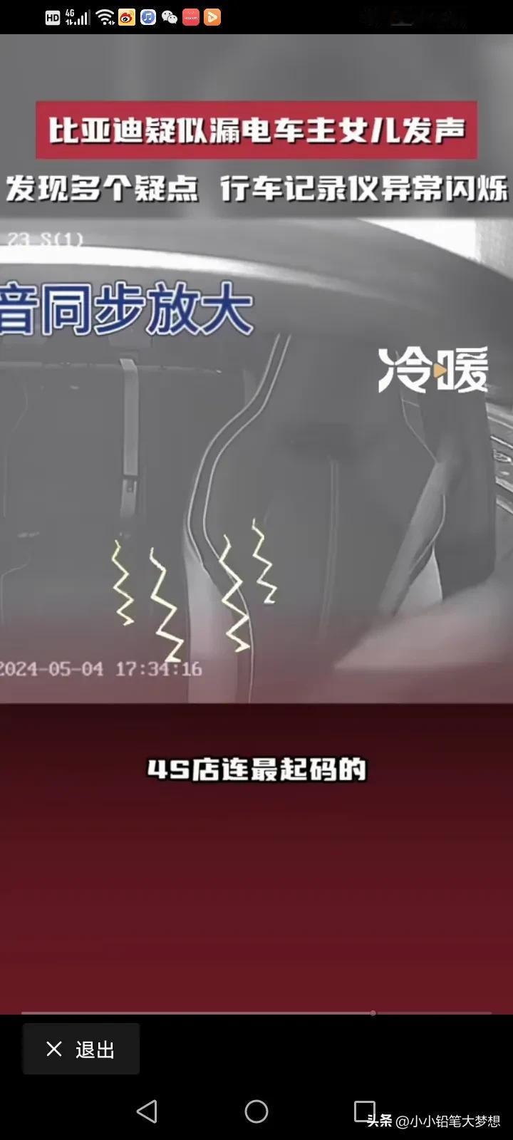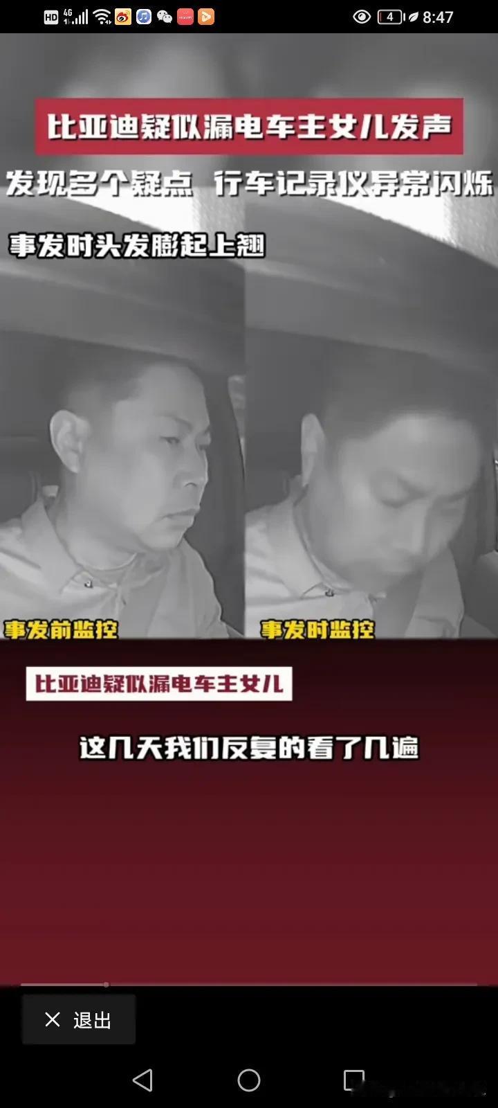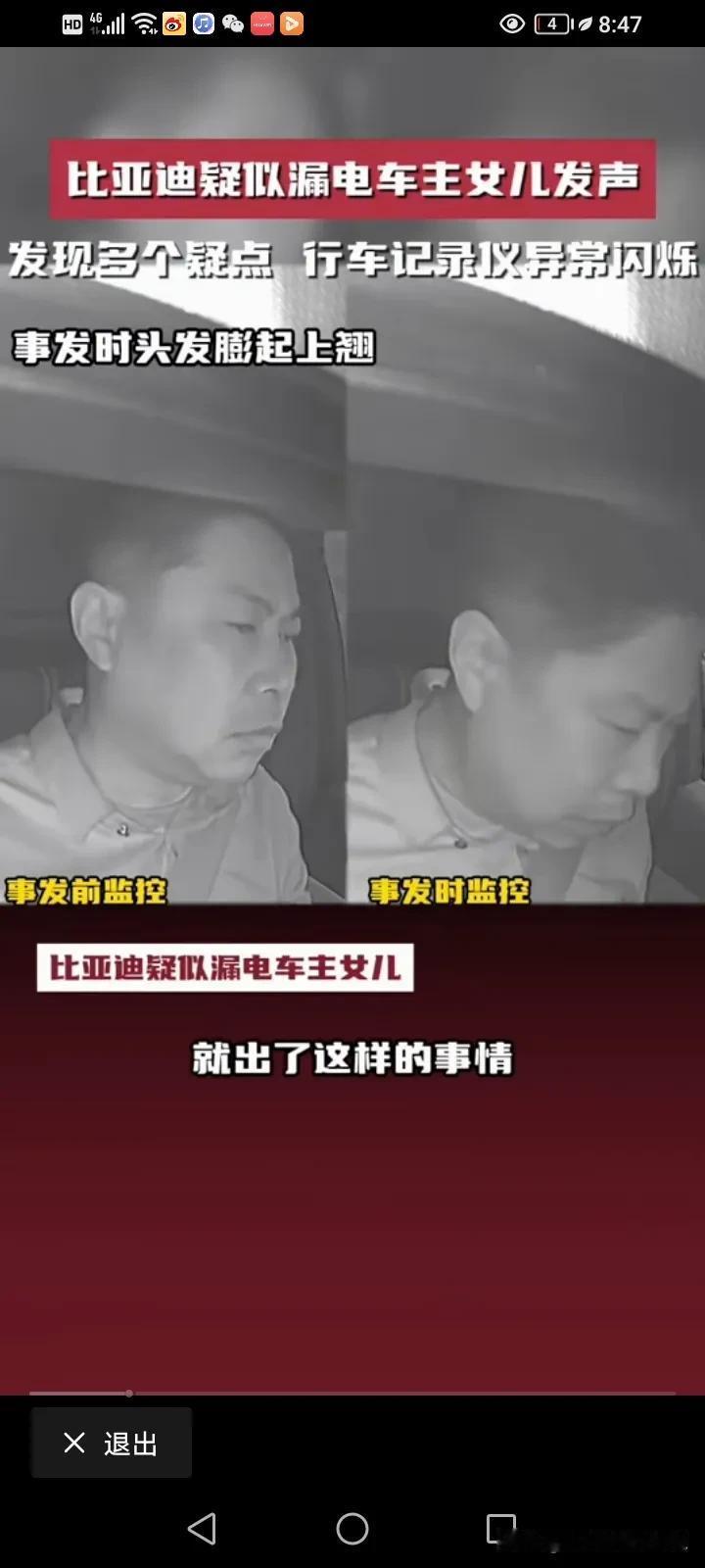 比亚迪疑似漏电造成脑溢血车主的女儿再次发声:反复看了视频,又发现了多个疑点,行车记录仪发现六次异常的闪烁,父亲的头发翘了起来,监控里面还有明显的触电声,监控视频里面父亲有六次触电的动作。 他说,父亲今年51岁,买了他最喜欢的比亚迪不到一个月,准备跑滴滴贴补家用,但没想到的是,开了不到三天就出现了触电的情况,她这几天反复的看了监控视频,发现16点42分08秒的时候记录仪就出现了故障,从原本的彩色变成了黑白的闪烁,然后一共出现了六次闪烁,再恢复成彩色。 17点33分和34分之间就有很明显的触电声。 最令家属寒心的是,事情发生之后,比亚迪说有人过来探望,还给了2000块钱的慰问金,他们根本就没看到人,也没看到钱,比亚迪连最基本的人道主义看望都没! 他们只想得到真相,得到公平的对待! 对于这件事情,我就纳闷了,车内的东西都是绝缘物体,我很好奇,他是怎么样同时接触了正负极?而且电车也有漏电保护,车内的电压也只有12伏,高压又不走车内,12伏又怎么会把人变成脑溢血呢?如果是高压,那不是脑溢血,而是人都已经没了。 而且更奇怪的是,车内明明有其他人,为什么只有车主出现毛病,第三者却没问题呢? 记录仪发生闪烁,是不是因为光线的问题,日夜转换的呢? 确实需要一个真相,我觉得家属可以找第三方再一次测试这辆车,到底有没有漏电?谜题就解开了。