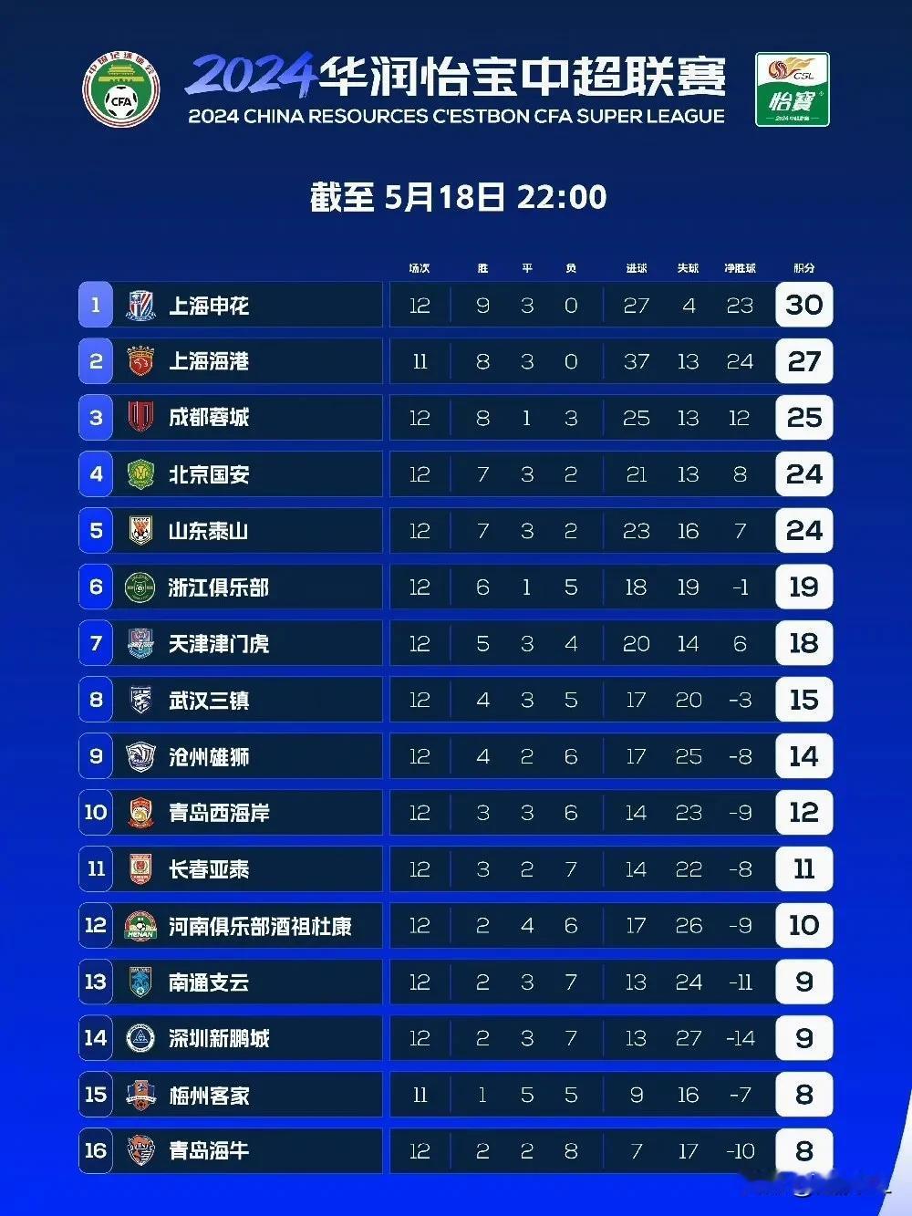 中超第12轮全部结束,两支球队最尴尬: 第一,北京国安,积分榜前五球队中只有国安输球,而且是输给了此前倒数第二的长春亚泰。 第二,青岛海牛,中超第12轮,15支球队共计打进43粒进球,打破历史记录,唯有青岛海牛在本轮比赛中一球未进,成为了这一记录的背景板。
