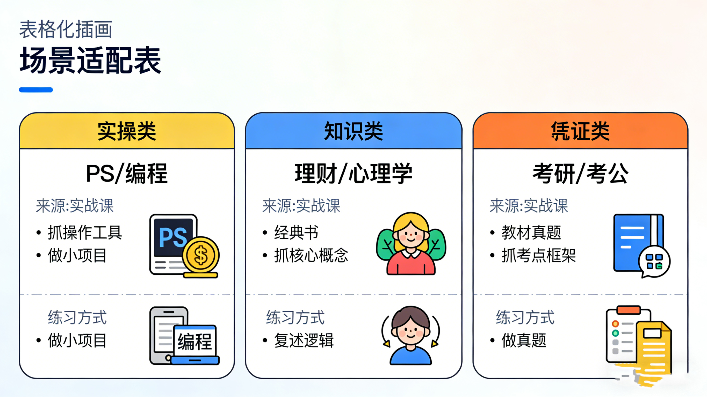 你是不是也有过这样的学习困境:想学一个技能,打开网络搜资料,瞬间被海量的课程、文章、干货淹没;买了厚厚的教材,逐字逐句读到一半,还是不知道核心要学什么;跟风学了很多“技巧”,最后发现大多用不上,不仅浪费了时间,还越学越迷茫。