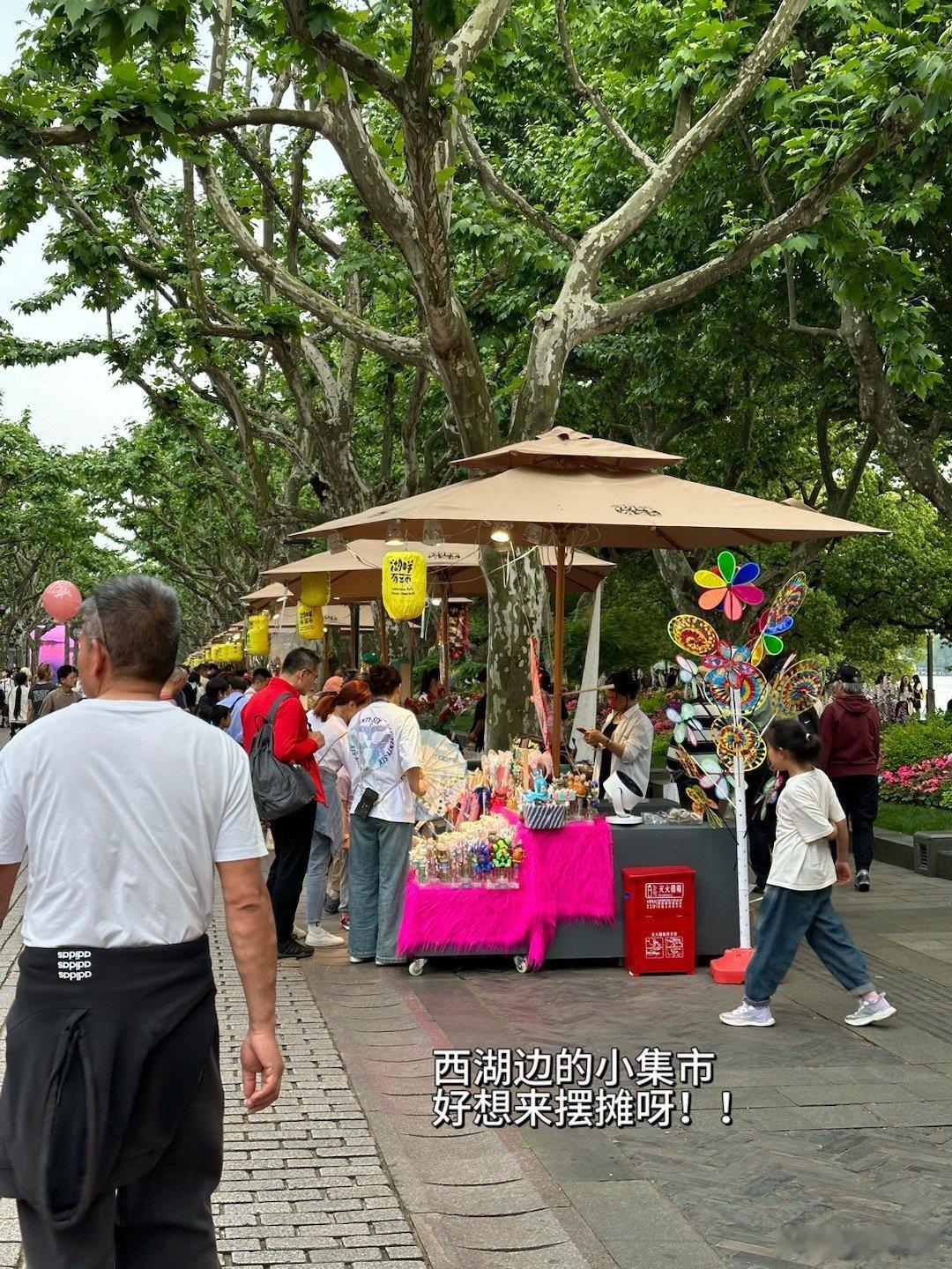 晚上还去西湖边溜达了一圈,看到了小集市,我也想去摆摊了!!#polg#