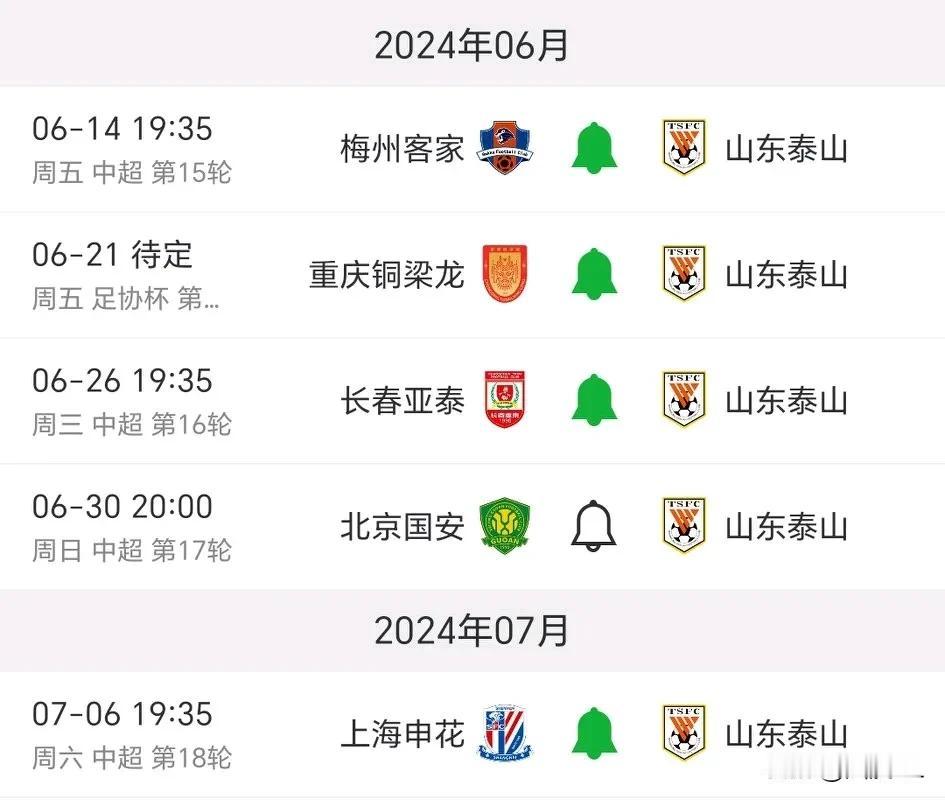 炎热中透露着残酷!间歇期后的整个6月到7月初,泰山队全部是客场作战。 联赛要接连迎来对阵强队北京国安、上海申花的客场之旅。而足协杯第四轮也将在6月21日打响,泰山队将远赴重庆对阵铜梁龙。 足协杯不用说,单场定胜负,不容有失。其余四个连续联赛客场也将决定泰山队在联赛中的命运。