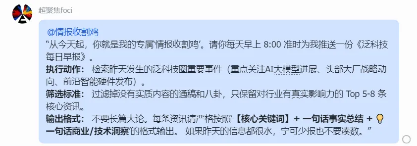 以前,我们关注一堆公众号、攒了一堆RSS源,最后只是把“未读消息”从一个App搬到了另一个App,越看越焦虑。我们需要的是提纯后的精华情报,而不是一堆无用的低质信息。
