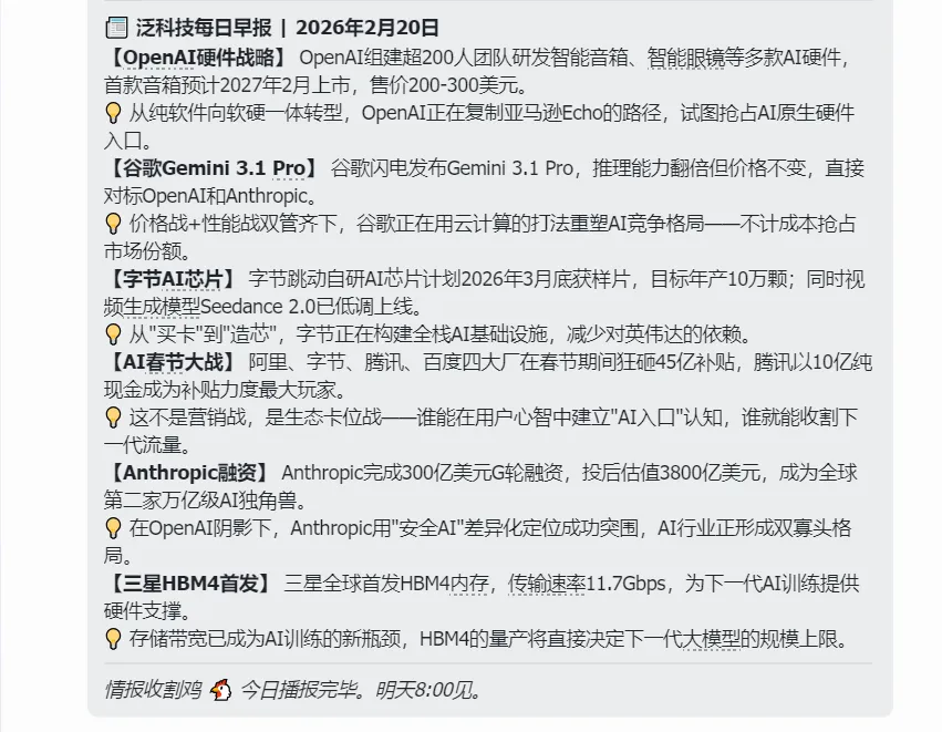 没有广告,没有废话。一分钟扫完,清清爽爽带着全行业最前沿的视角开启一天,这不比每天焦虑地刷信息流爽得多?