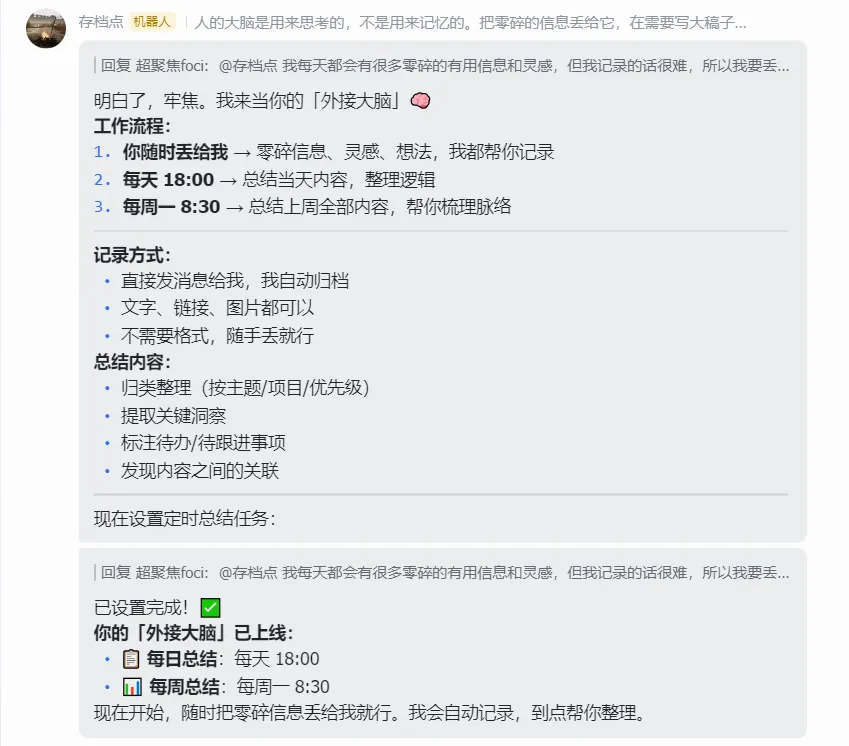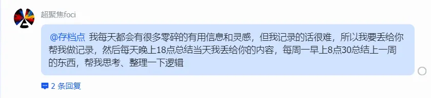 这哪里是备忘录,它不仅能接管信息整理的脏活,还能对一系列事件进行归纳总结,这分明就是一个任劳任怨的分析师啊,这样节省下来的时间我就可以用来摸鱼(不是),留给更高价值的思考与决策了。