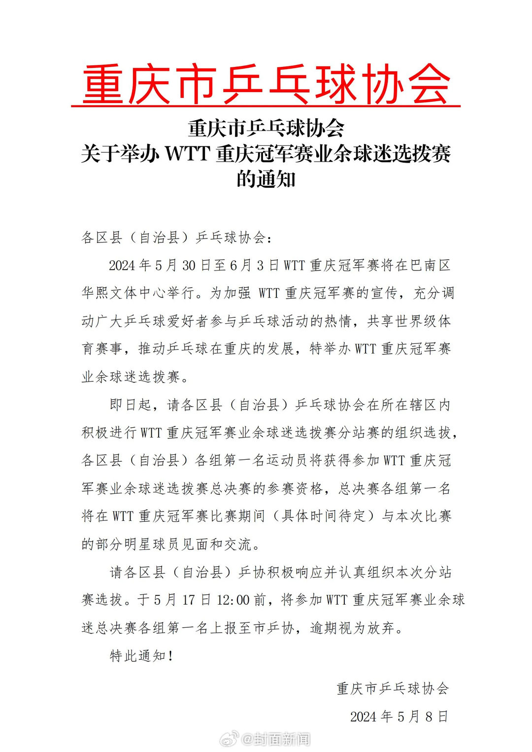【#官方回应马龙退赛有球迷要求退票#:已关注此事】5月20日,WTT(世界乒乓球职业大联盟)官方宣布:中国队球员马龙退出WTT重庆冠军赛,另一名中国选手林高远通过递补参赛。部分球迷倍感失望,要求退票。不过,线上售票平台大麦网的退票通道却已经关闭。大麦网客服人员表示:“赛事的票务销售是基于一个项目进行的,而并非特定的一个选手参赛的情况。根据项目退票政策,目前是不支持(马龙粉丝)退票的(要求)。”赛事承办地重庆巴南区体育局的相关工作人员接受采访时称:“已经关注到这个事,还没有出正式结果。”