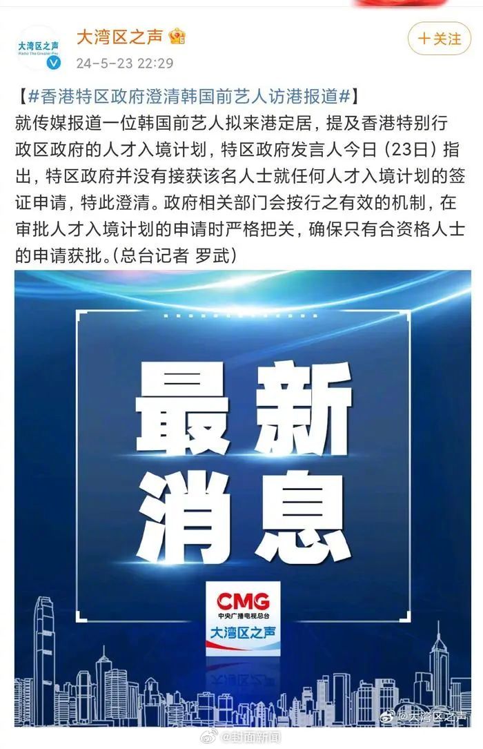 【#大湾区之声否认李胜利定居香港#】5月23,港媒称韩国组合BigBang成员李胜利疑似定居香港,更打算于尖东“重操旧业”开夜场。针对此报道,香港艺人向佐评论称:真的不欢迎,麻烦离开中国香港远一点!23日晚,回应称,就传媒报道一位韩国前艺人拟来港定居,提及香港特别行政区政府的人才入境计划,特区政府发言人今日(23日)指出,特区政府并没有接获该名人士就任何人才入境计划的签证申请,特此澄清。(橙柿互动)