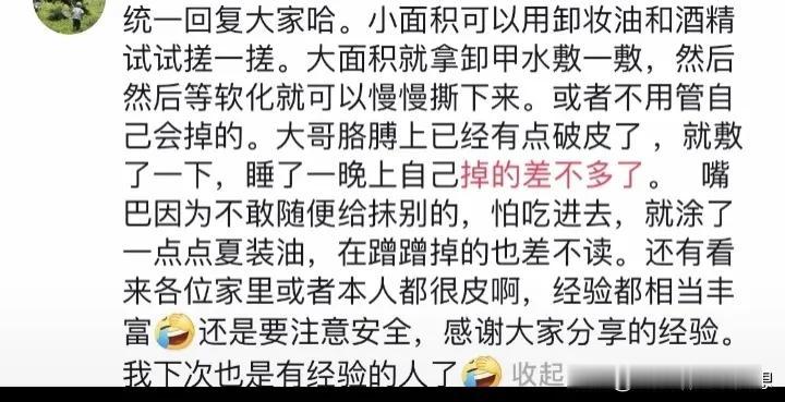 悲催了!502胶水厂家,你睡着了吗?我睡不着了,这个老六大晚上的,拿你家的胶水把自己糊了,现在怎么样弄都整不掉,去了两家医院,医生也束手无策,下次能不能把溶解配方也分享出来? 这是一位妈妈发出来的视频,她说孩子把502胶水搞到手上了,然后自己抹到手臂上,又擦到嘴上了,因为不敢弄,怕弄掉孩子的皮,所以直接去了医院,第一家医院说不好弄,又跑去第二家,结果还是一样。 孩子的妈妈最后不死心回家发抖音求助,很多人都给予了各种办法,有说用酒精的,有说用风油精,有说用95的汽油,有说用洗甲水。 最后,孩子的妈妈用洗甲水敷一下给弄得差不多了,就是嘴巴不敢弄,涂了一点点卸妆油。 502这东西确实真的很容易就弄到手,我记得我们小时候还有一个人弄到了眼睛,他现在两个眼睛视力差距很大,但没想到,网友们的经历还更离谱,简直笑死个人!