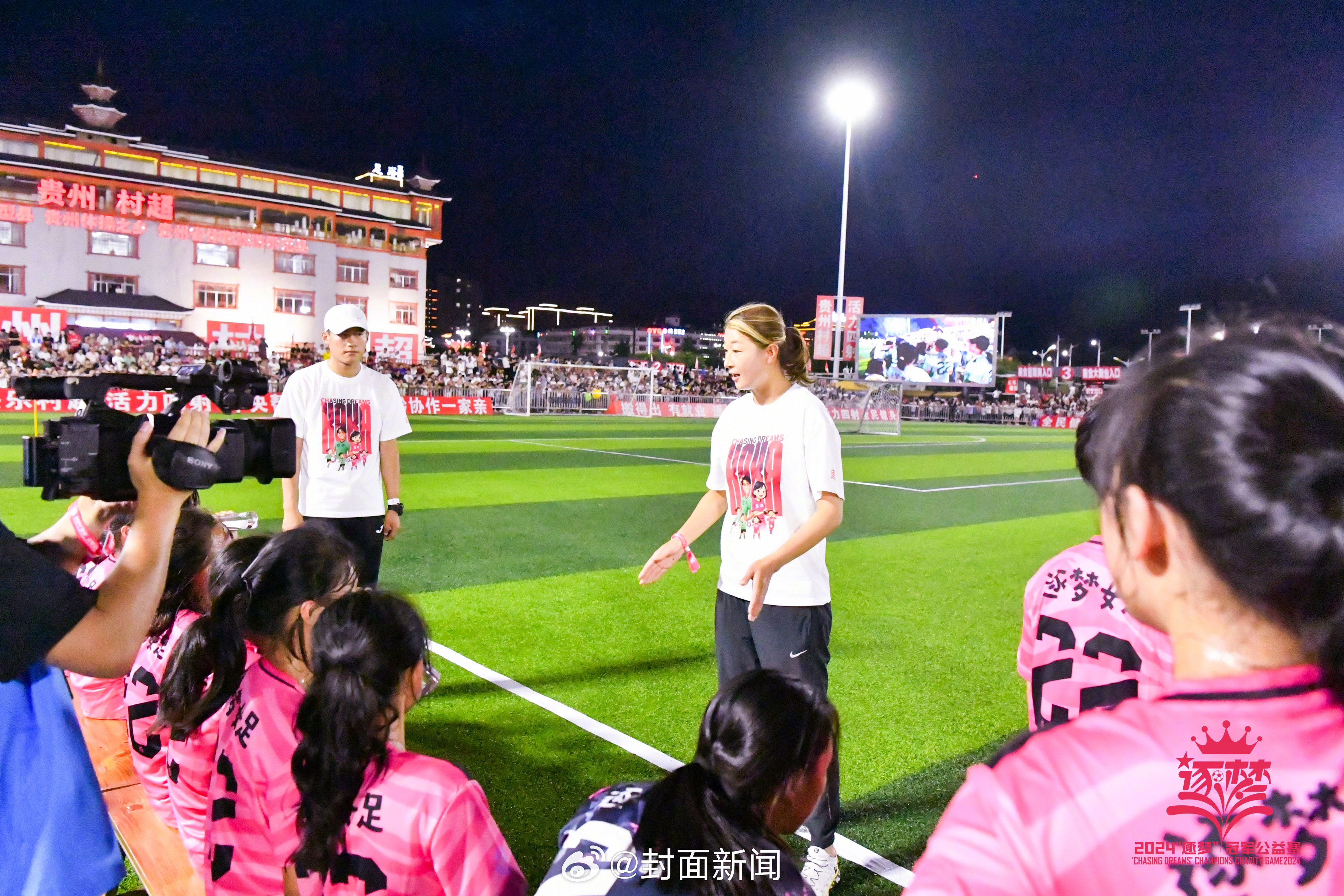 5月27日,一场特别的足球公益赛在贵州榕江开踢。足球巨星卡卡与前中国女足队长王坤各带领一支队伍亮相“逐梦”青少年女足冠军公益赛现场,与小球员们互动交流,并亲自指导踢球。