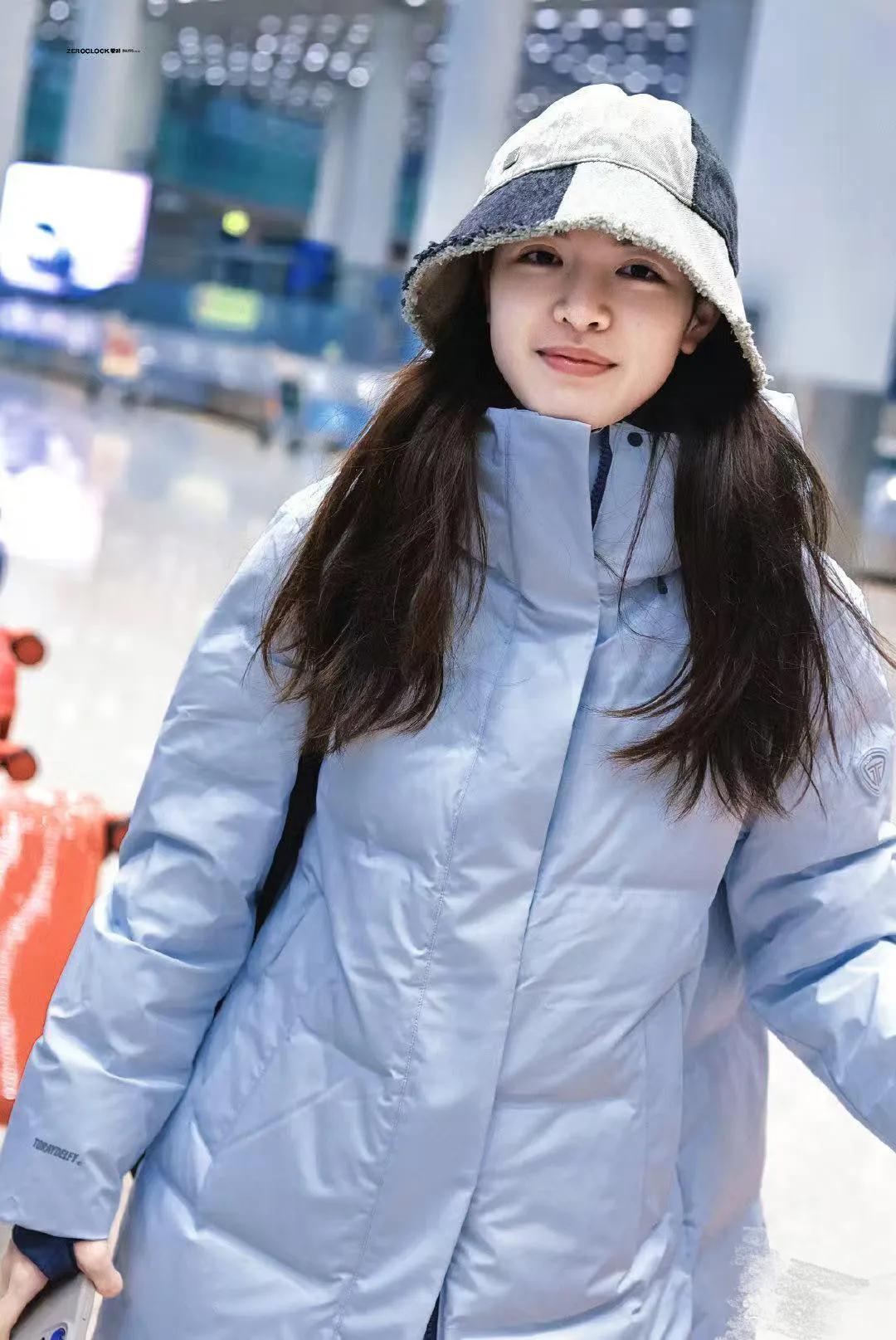 钟楚曦机场私服真时髦!长款羽绒服+牛仔裤+渔夫帽,减龄又高级!